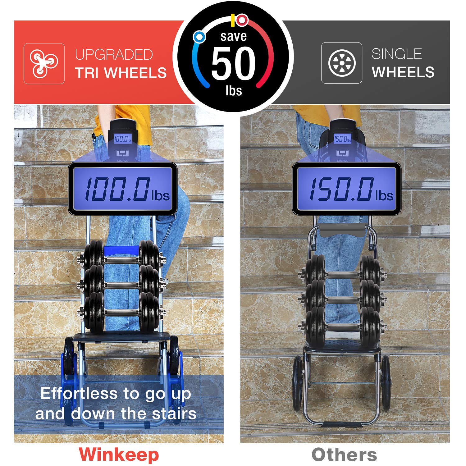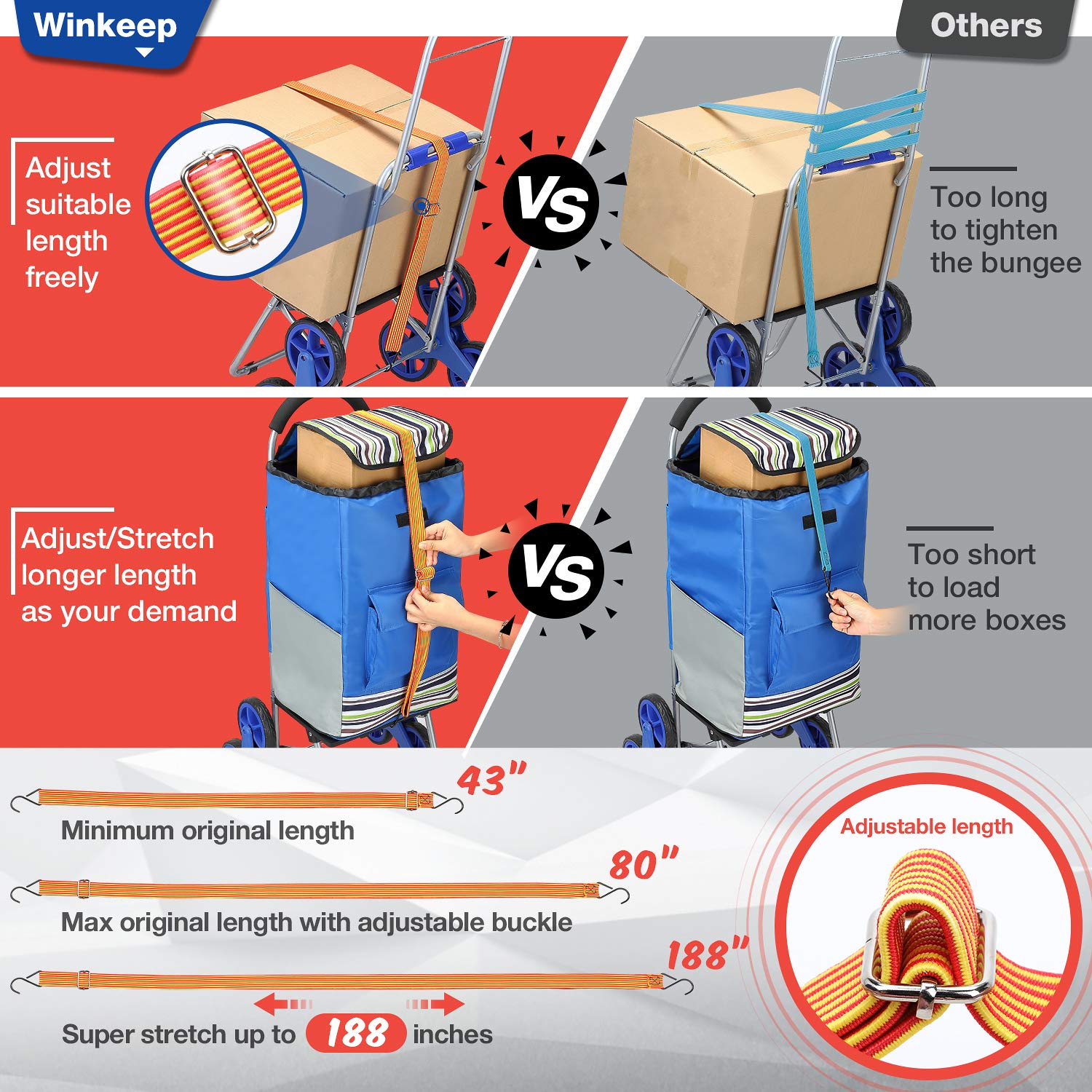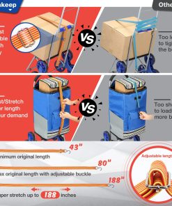 Winkeep – Chariot de courses pour vous faciliter la vie. Escalier extra large et super charge Avec plus d’espace de stockage, plus grande surface de plate-forme, peut contenir des articles robustes et de grande taille. Le chariot facilite le transport et le stockage, sans douleur et sans tracas. Construction en métal résistant à la corrosion et robuste. Matériau de haute qualité pour rendre le cadre en acier du chariot d’escalier durable et durable. Design à 3 roues, fabrication artisanale. Économisez 22 kg et sans bruit, il est parfait pour transporter de la nourriture, des bagages et du linge dans les escaliers. Cordon élastique réglable. Il est très utile à combiner avec le chariot. Vous pouvez ajuster librement la longueur du cordon élastique pour fixer la charge. Il peut tenir fermement vos articles sans bouger. Parfait pour transporter des plantes en pot, des boîtes surdimensionnées, des objets lourds. colis, marchandises et ainsi de suite Chariot de courses multifonction démontable. Peut être utilisé comme chariot de courses, chariot de courses, chariot utilitaire, chariot pliable et chariot spécial général sur roulettes. Chariot de courses pliable. Il est pour un rangement compact ou peut devenir votre ordinateur portable facile à utiliser lorsque vous êtes en déplacement. Que vous fassiez des courses, des achats, que vous déplaciez des boîtes d’approvisionnement, cette plateforme peut vous aider à tout transporter. Spécification : Taille étendue : 44 x 19 x 18 pouces. Dimensions plié : 25 x 16 x 11 pouces. Taille du sac à provisions : 15 x 11 x 24 pouces Taille de la plate-forme: 18 x 12 pouces Contenu de la livraison : 1 sac de courses. 1 corde élastique réglable. 1 cadre de chariot de courses. 2 roulettes triples. 1 x Axe de chariot de courses. 2 petits tubes.