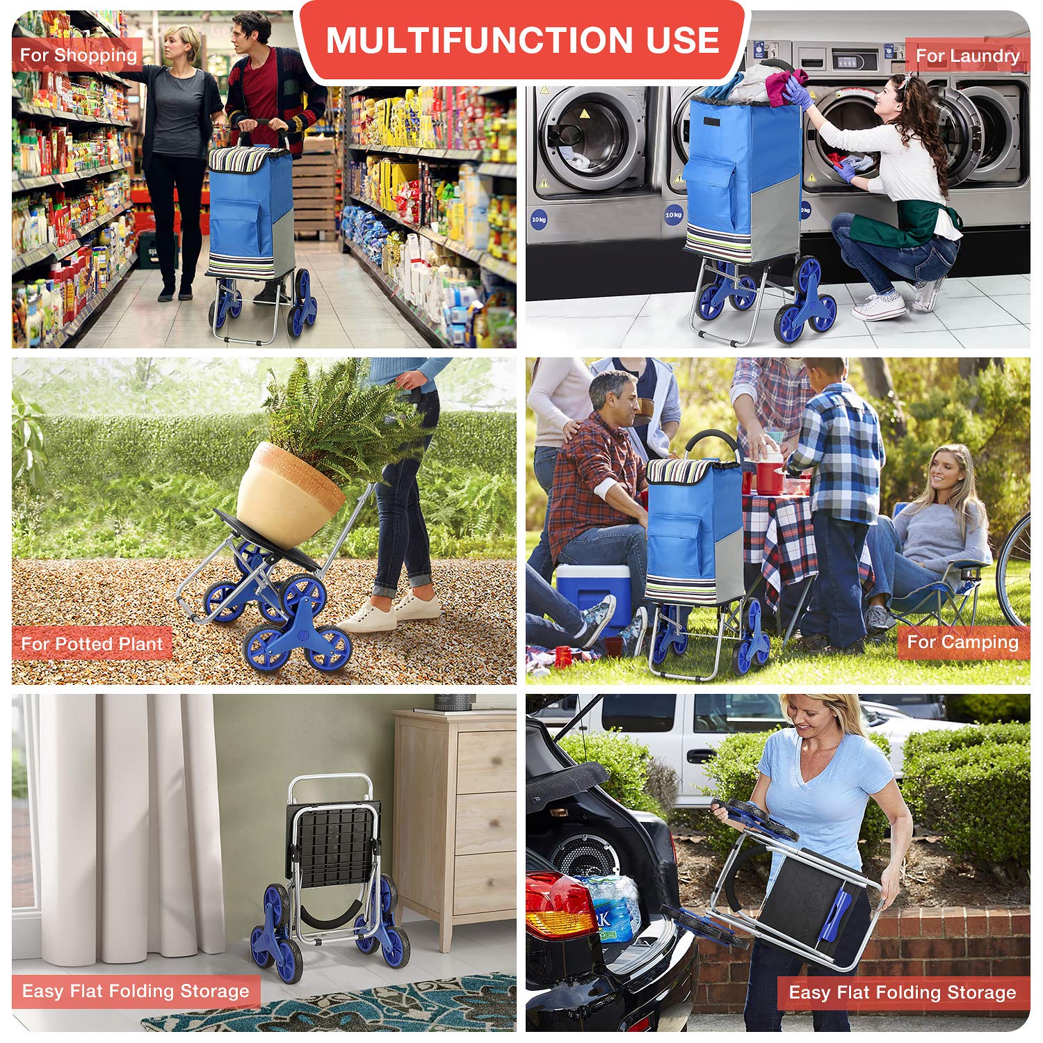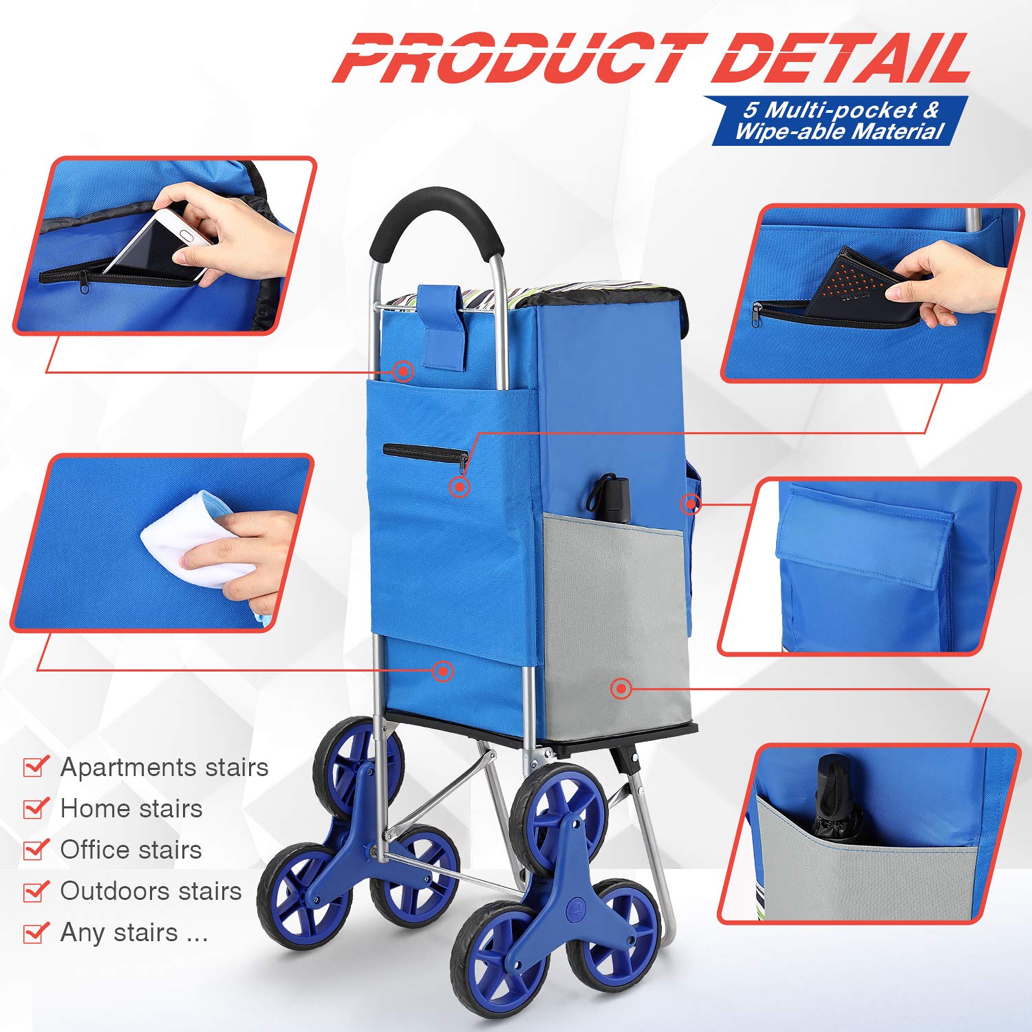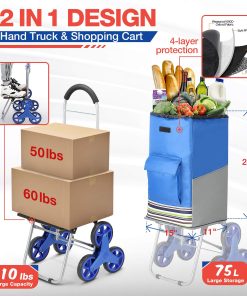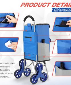 - Super chargement sac de capacité 50kg et 75L:Adoptez une construction en acier robuste et de haute qualité résistant à la rouille pour fabriquer le cadre en acier du chariot à escaliers, pouvant transporter des objets lourds et volumineux, et adapté pour un poids de charge de 50kg. Avec un sac shopping extra large et imperméable, contient 6 poches pour le stockage et le stockage facile. Il peut être installé en quelques minutes sans outils et peut également être plié en petite taille.