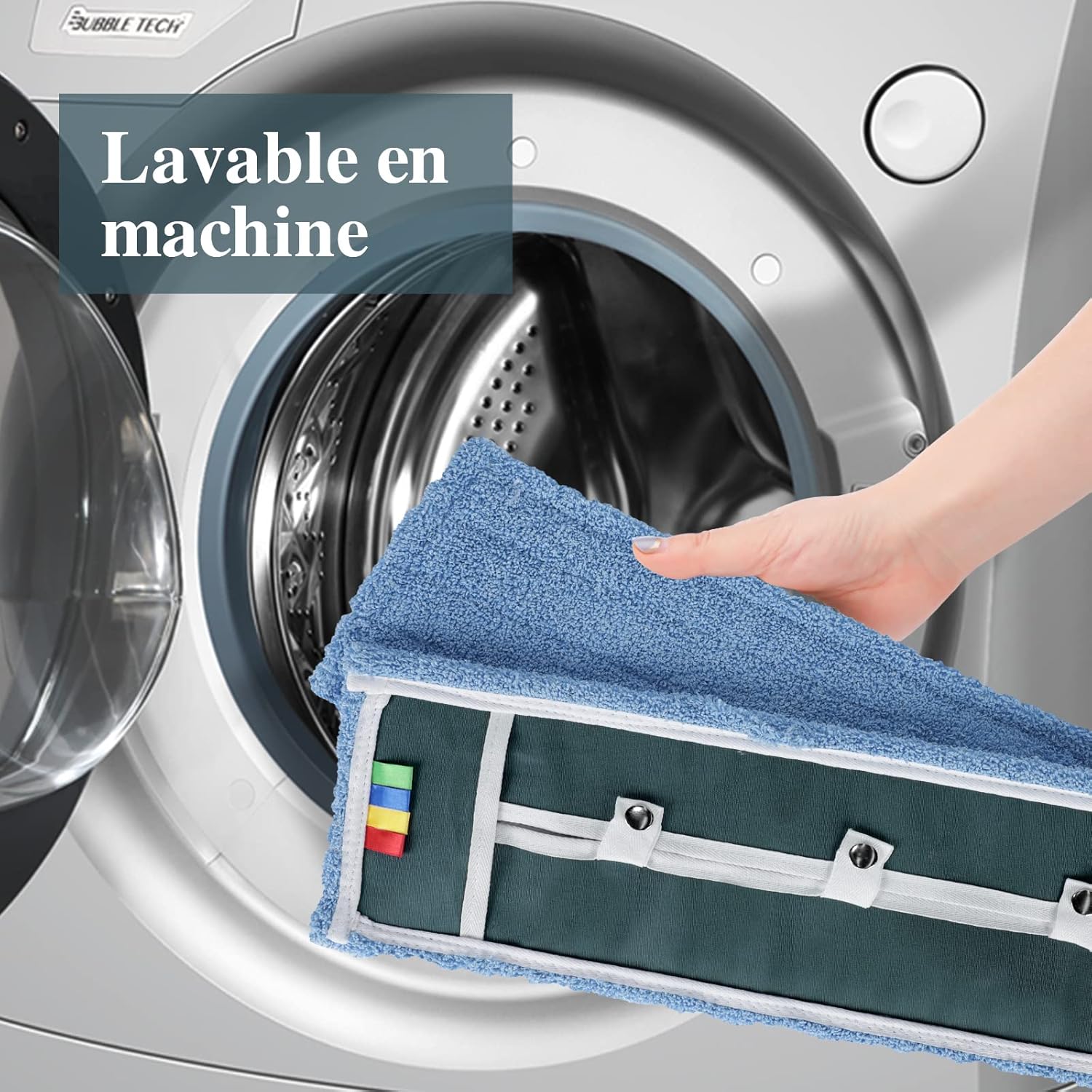 S’adapte bien au balai, la microfibre attrape efficacement la poussière et se nettoie facilement en machine, facilitant l’entretien quotidien; la tête paraît solide et offre un très bon rapport qualité-prix.