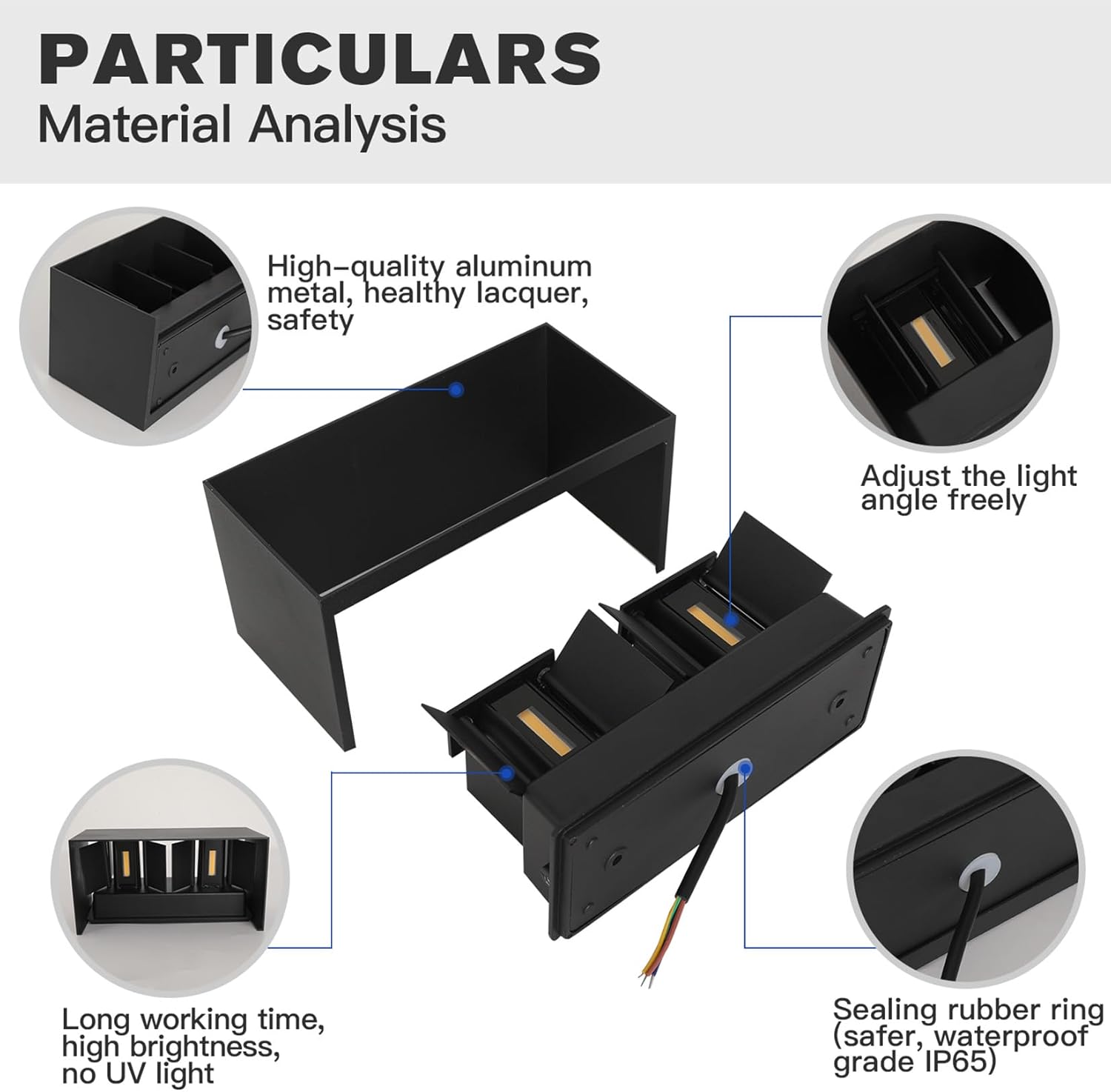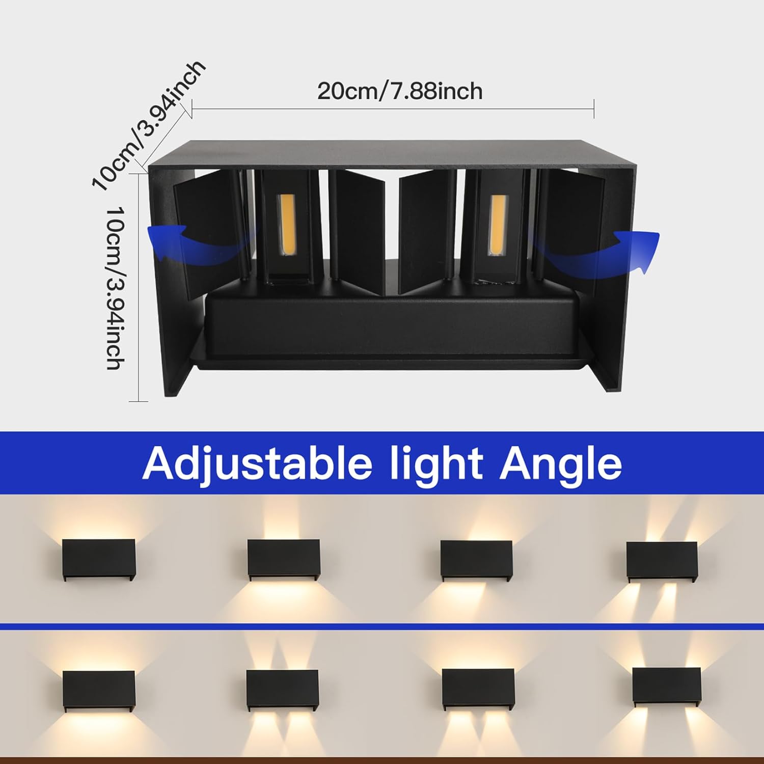 - ★【Spécifications du produit】: Applique murale de puissance 25W, taille rectangulaire L20xW10xH10cm, 2500LM lumens, IP65 imperméable à l’eau et à la poussière. Réglable librement l’angle de la lumière, facile à installer et polyvalent, il convient à l’éclairage décoratif intérieur et extérieur.