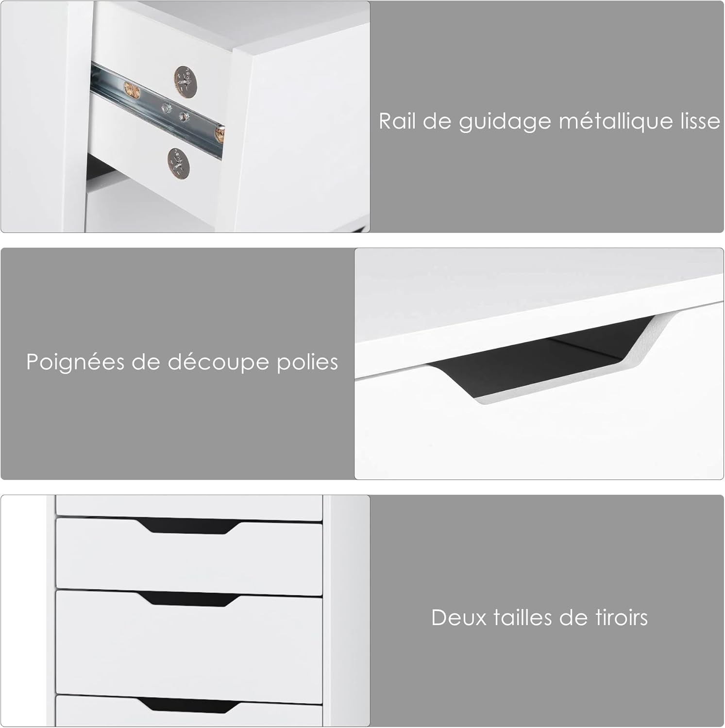 - Haute qualité : la commode rangement est composée de planches de bois stables et durables. L’anti-basculement offre une utilisation plus stable. Rails métalliques de haute qualité pour une ouverture et une fermeture faciles des tiroirs