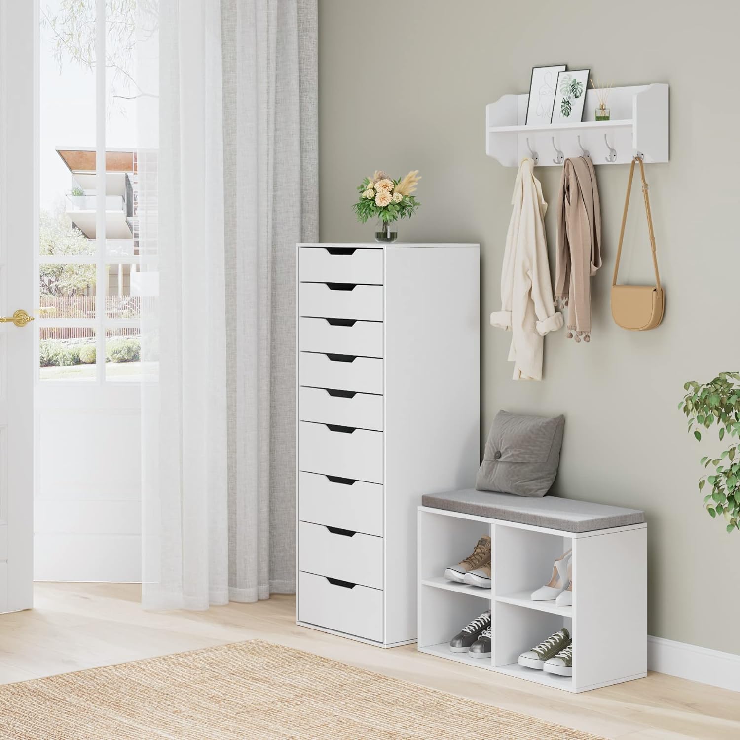 - Design intime : l’aspect de la peinture blanche crée un style élégant et simple, adapté à différents styles de maison. La poignée creuse est non seulement pratique pour retirer le tiroir, mais donne également à la commode blanche une forme unique