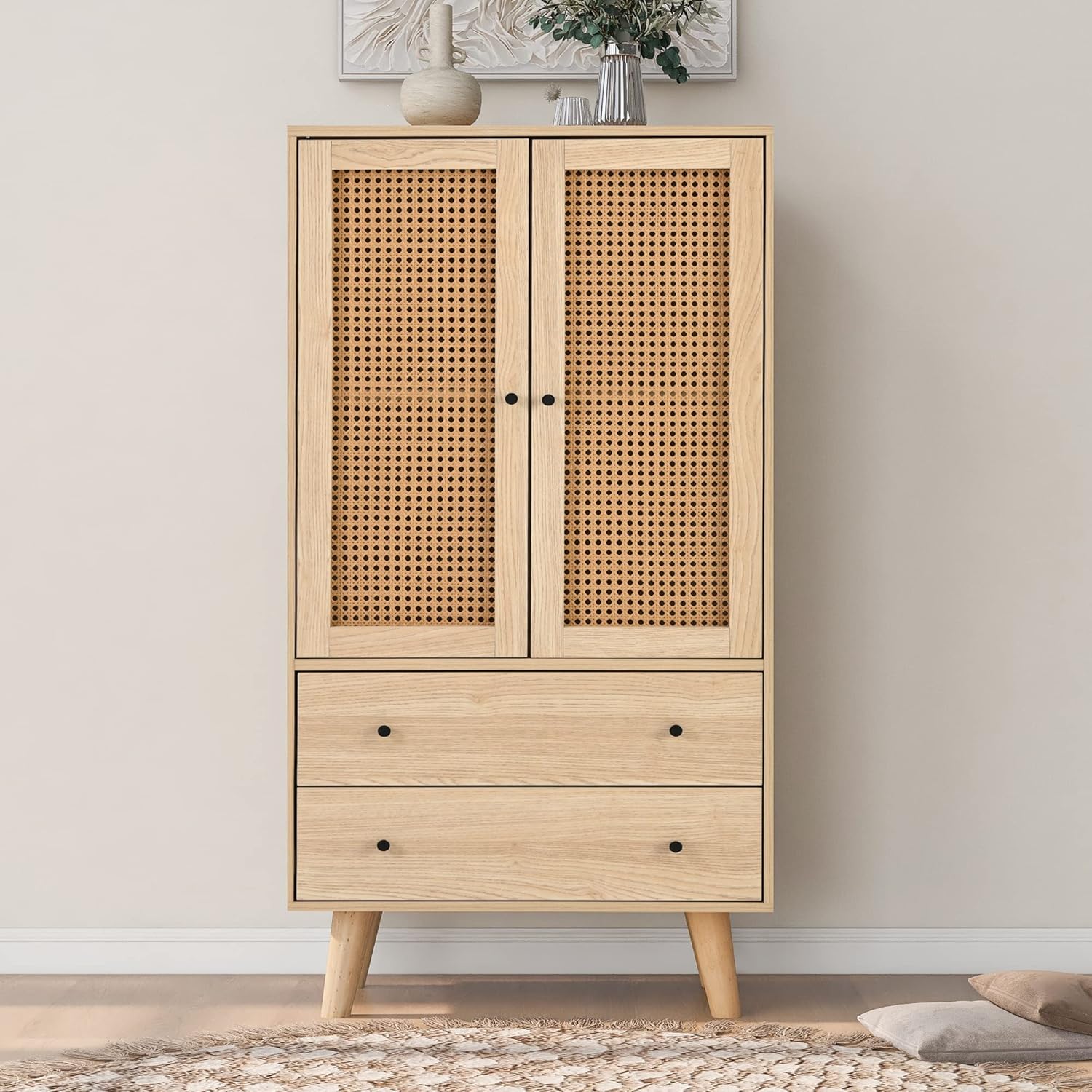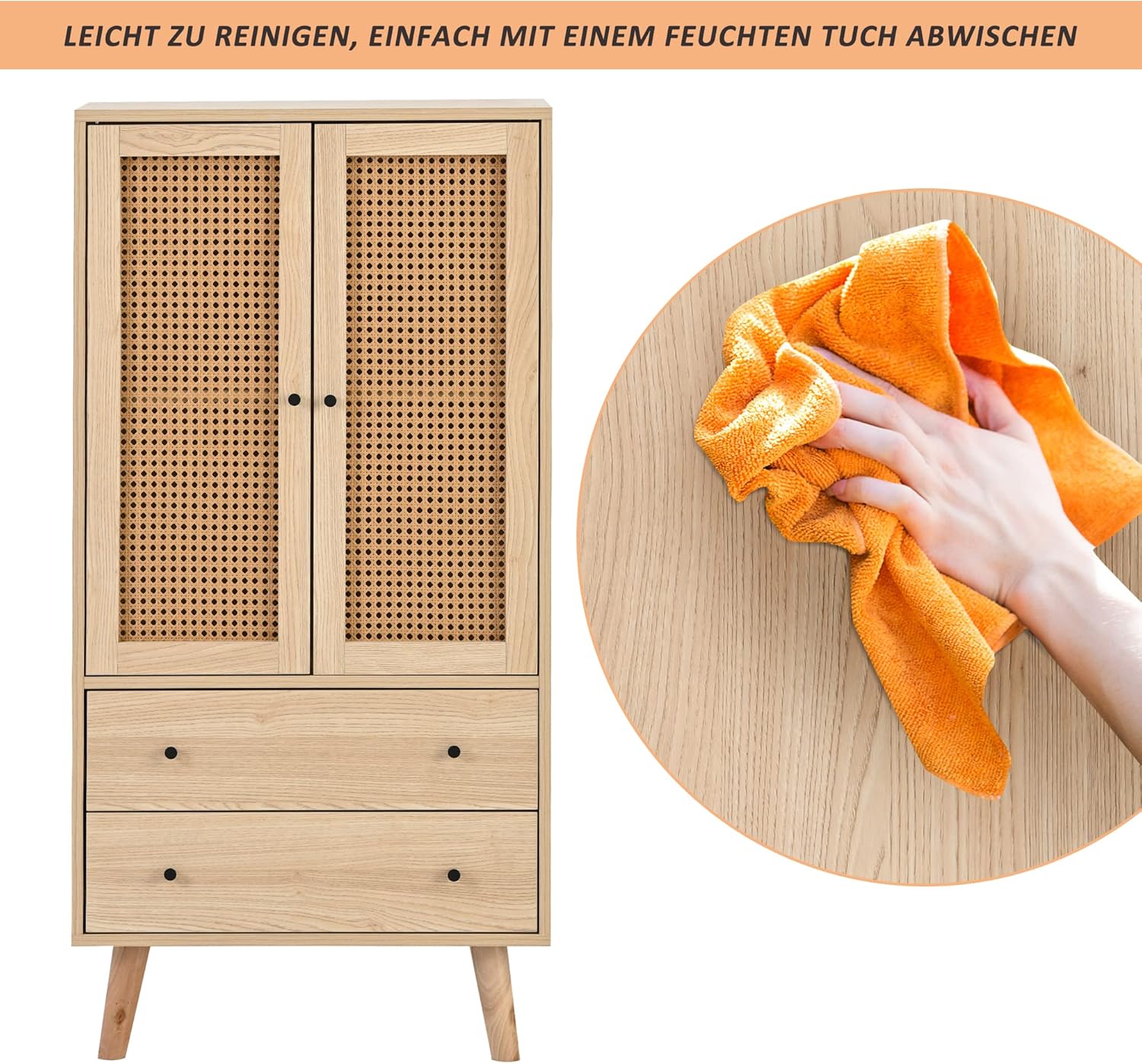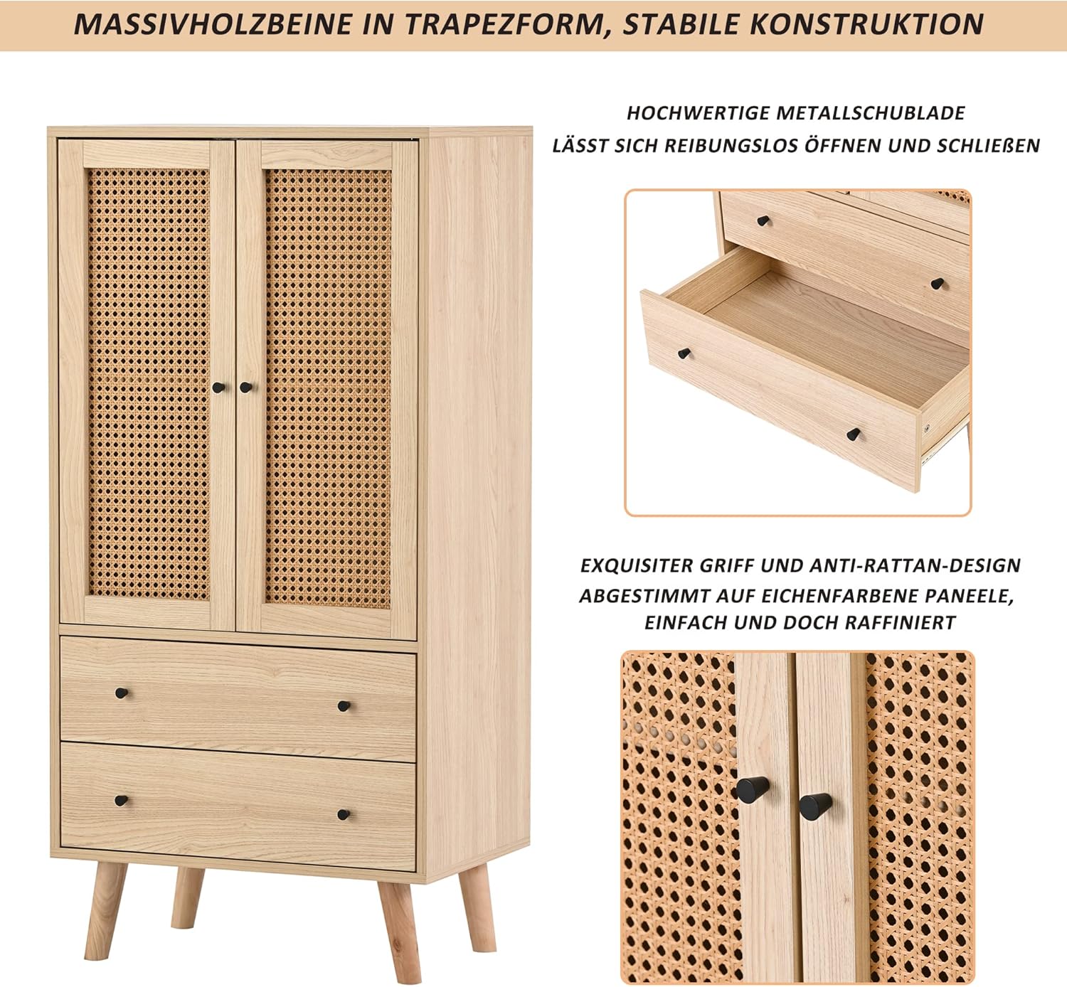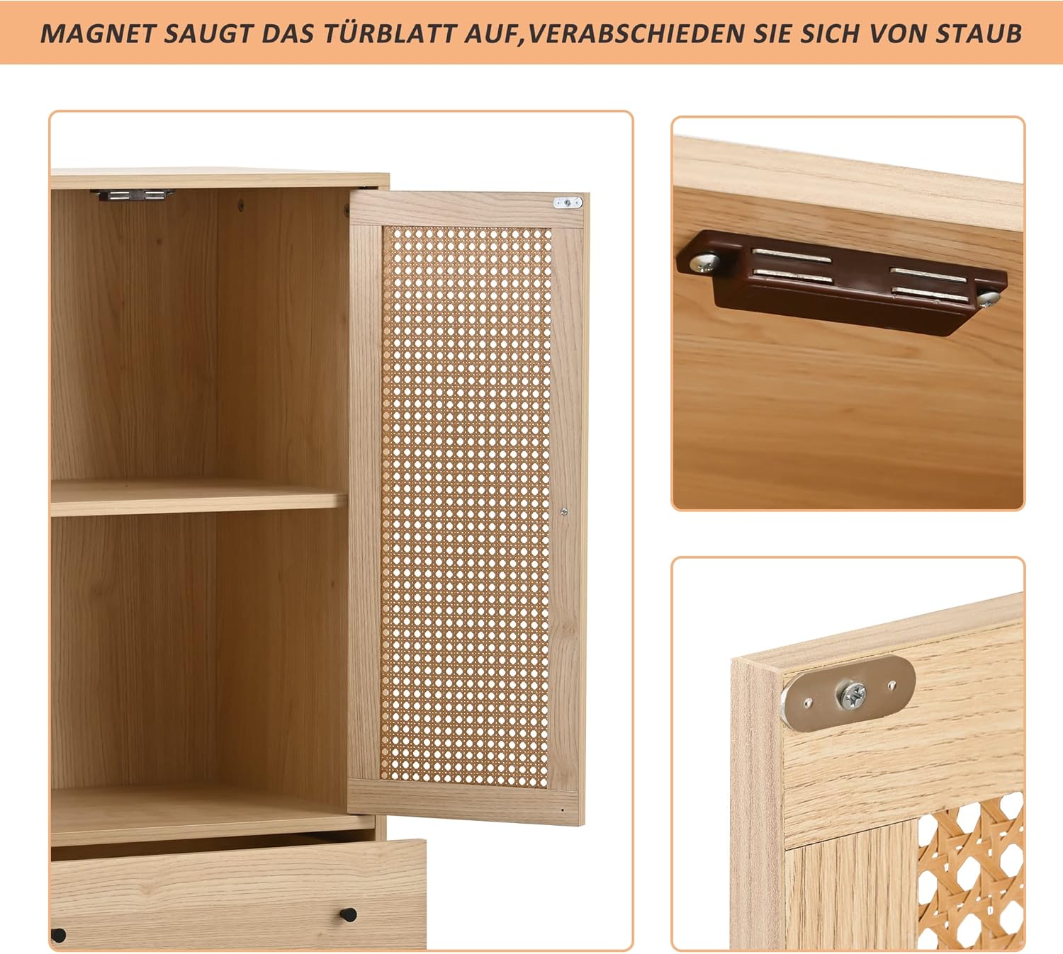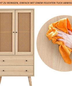 - Design pratique et élégant : plus d’espace de rangement : l’aparador est composé de 2 portes en bois et 2 tiroirs. La mémoire est donc garantie. Panneau de porte en tissu de rotin : il est beau et élégant, empêche la poussière d’entrer et facilite le nettoyage quotidien. Sans charnière : les panneaux de porte sont conçus pour être très faciles à monter et réduire le bruit en même temps.