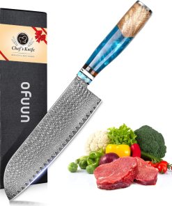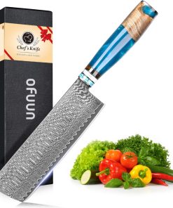 - 【Forgé avec 67 Couches de Tôle d’acier Damas】oFuun couteau de chef est forgé en acier Damas avec un HRC 60-62 (testeur de dureté Rockwell). Un excellent couteau cuisine en acier Damas est plusieurs fois plus tranchant qu’un couteau en acier ordinaire, il empêche la corrosion et l’usure et assure une vie saine dans la cuisine.