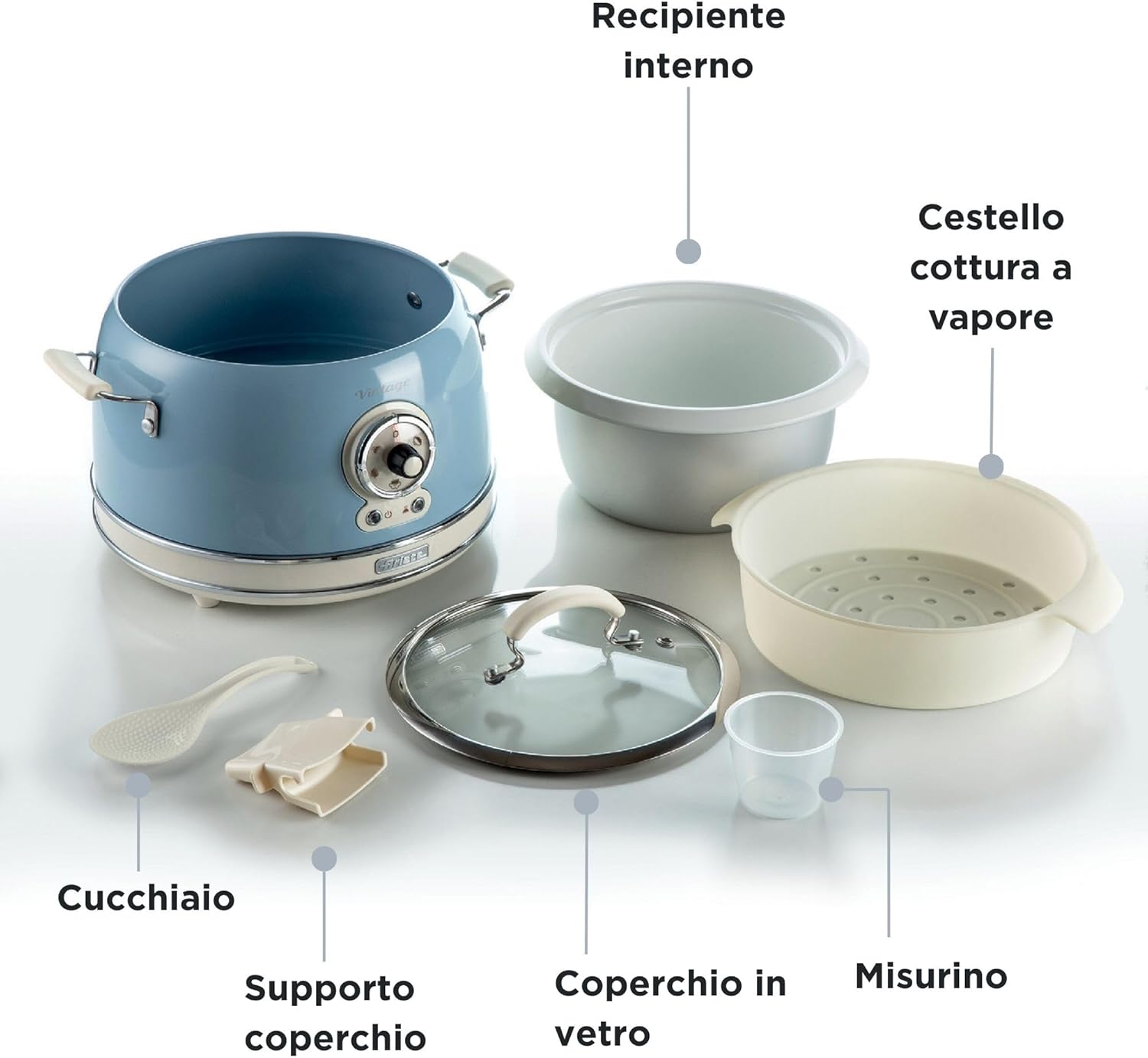 Le cuiseur Ariete 2904 est une excellente surprise: joli look vintage en celeste, capacité pratique de 3,5 L et cuisson vapeur fiable. Le revêtement céramique rend le nettoyage facile et le riz sort toujours moelleux; je l’utilise aussi pour cuire des légumes, et il s’en sort très bien. Simple à utiliser, compact et d’un très bon rapport qualité-prix.