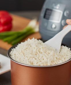 Ceci est mon deuxième cuiseur de riz; il performe aussi bien que mon ancien modèle à 30€ et propose quelques options de cuisson supplémentaires qui justifient le prix si vous voulez des fonctions en plus. Le riz est très bien cuit à la sortie et les accessoires fournis sont pratiques, donc c’est globalement une bonne offre. Quelques défauts toutefois : il n’est pas plus efficace pour cuire le riz que mon ancien appareil, la navigation est moins intuitive et nécessite de lire le manuel, les repères de niveau d’eau dans le bol sont difficiles à voir car noirs sur fond sombre, le minuteur affiche seulement minutes/heures et indique le temps écoulé depuis la fin sans précision, et la fonction maintien au chaud est trop chaude — le riz au fond sèche après une demi-heure environ.