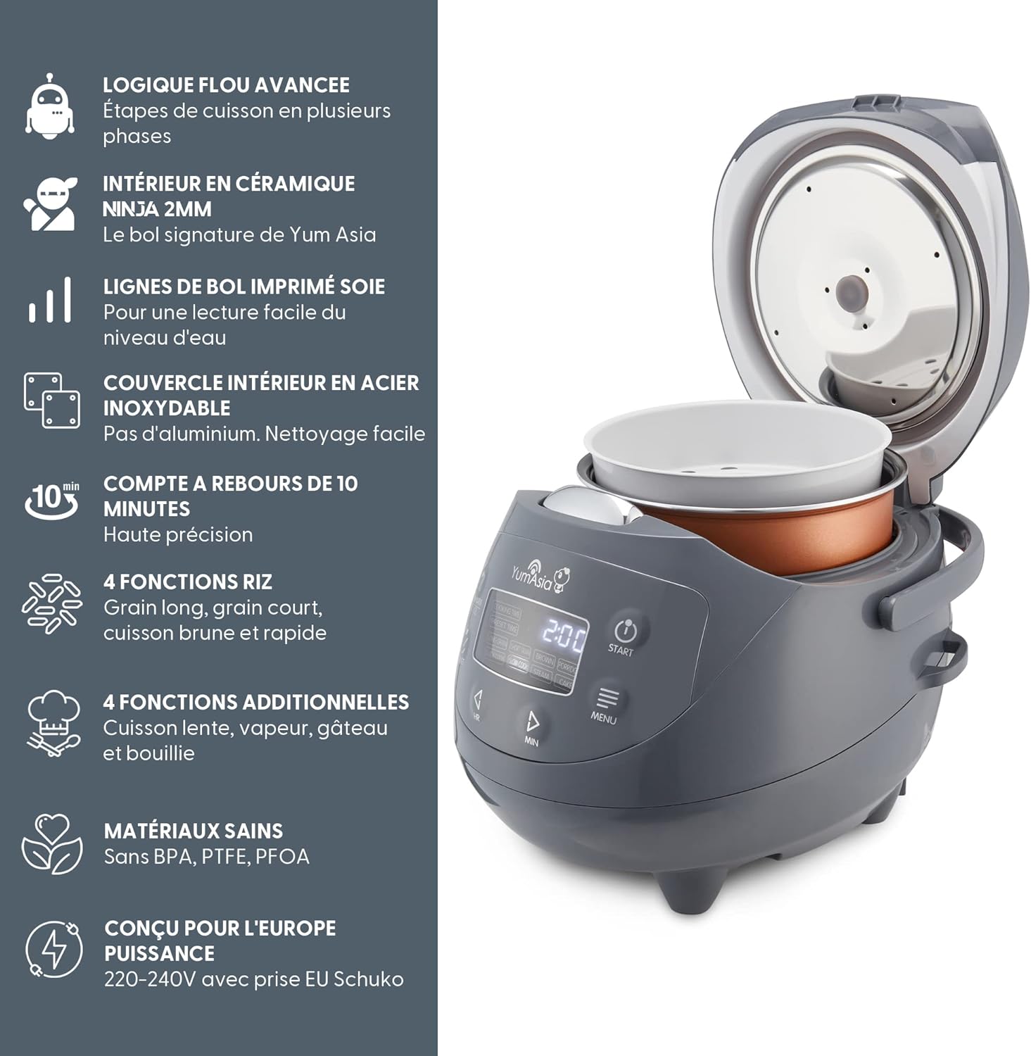 - IDÉAL POUR LES PETITES CUISINES INDIVIDUELLES OU LES COUPLES PAR ‘YUM ASIA’ LES EXPERTS DU CUISEUR À RIZ – Capacité de 3,5 tasses de riz non cuit (1-3 personnes), 0,63 litre, 220-240V, 50Hz avec cordon d’alimentation détachable EU Schuko