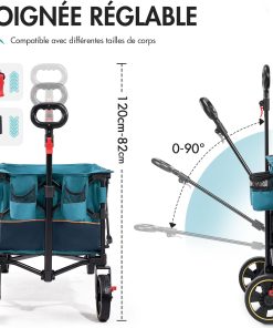 - Vaste champ d’application : le chariot de plage pliable ne convient pas seulement pour le camping, mais aussi, grâce à sa polyvalence, pour les réunions de famille, les sorties à la plage ou les courses quotidiennes. Que vous planifiez un safari ou que vous fassiez simplement vos courses au supermarché, le chariot de transport est le compagnon idéal qui rend la vie plus facile et plus agréable.