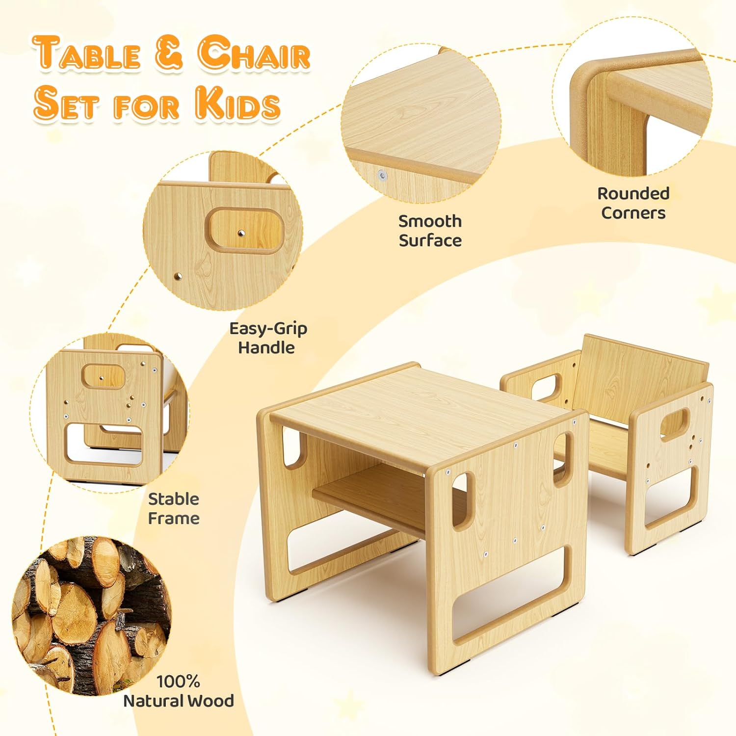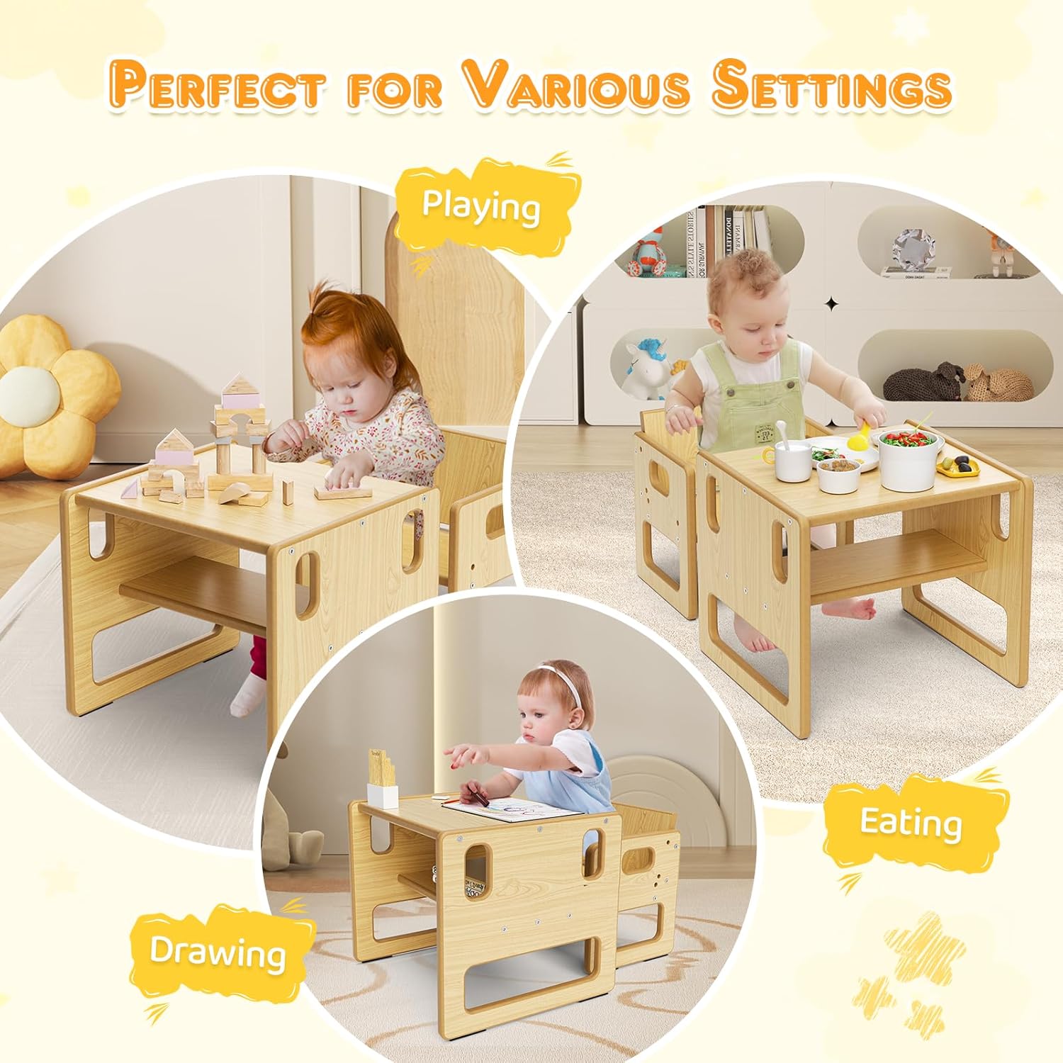 - Durable : Fabriqué en contreplaqué de peuplier de qualité maternelle, sa construction robuste garantit que votre ensemble de chaises Montessori ne se déformera ni ne se cassera facilement, vous garantissant ainsi des années d’utilisation fiable. Profitez des repas avec votre bébé et regardez-le grandir confortablement et avec style.
