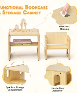 Description du produit Cet ensemble table et chaises pour tout-petits est fabriqué en bois naturel de première qualité, avec des angles lisses et arrondis pour plus de sécurité. Il comprend un plateau spacieux, un rangement intégré et une chaise ergonomique confortable avec dossier réglable. Facile à déplacer et à ranger, il est parfait pour divers environnements : maison, espaces d’apprentissage, aires de jeux, crèches et salles de classe. Caractéristiques : Matériau : Tilleul Dimensions de la table : 40 x 37,9 x 35 cm Dimensions de la chaise : 32 x 24,8 x 31 cm Contenu du colis : Table * 1 Chaise * 1 Jeu d’autocollants * 1 Clé Allen * 1 Jeu de vis * 1 Avertissement De Sûreté Soyez prudent lors de l’assemblage et supervisez les enfants à tout moment lors de l’utilisation du produit.