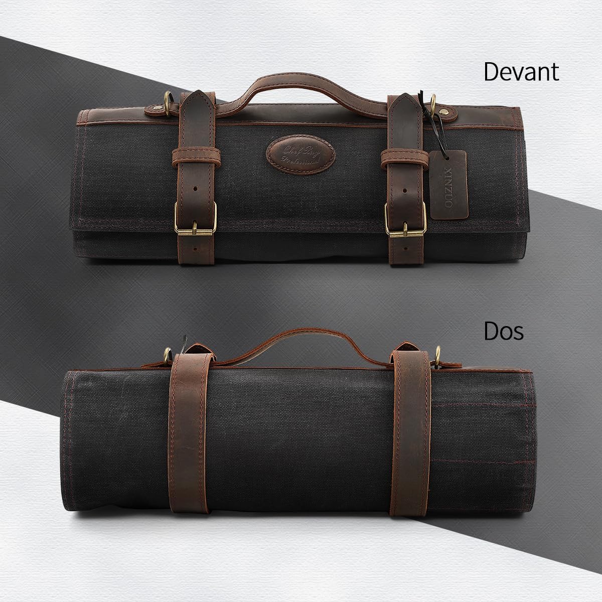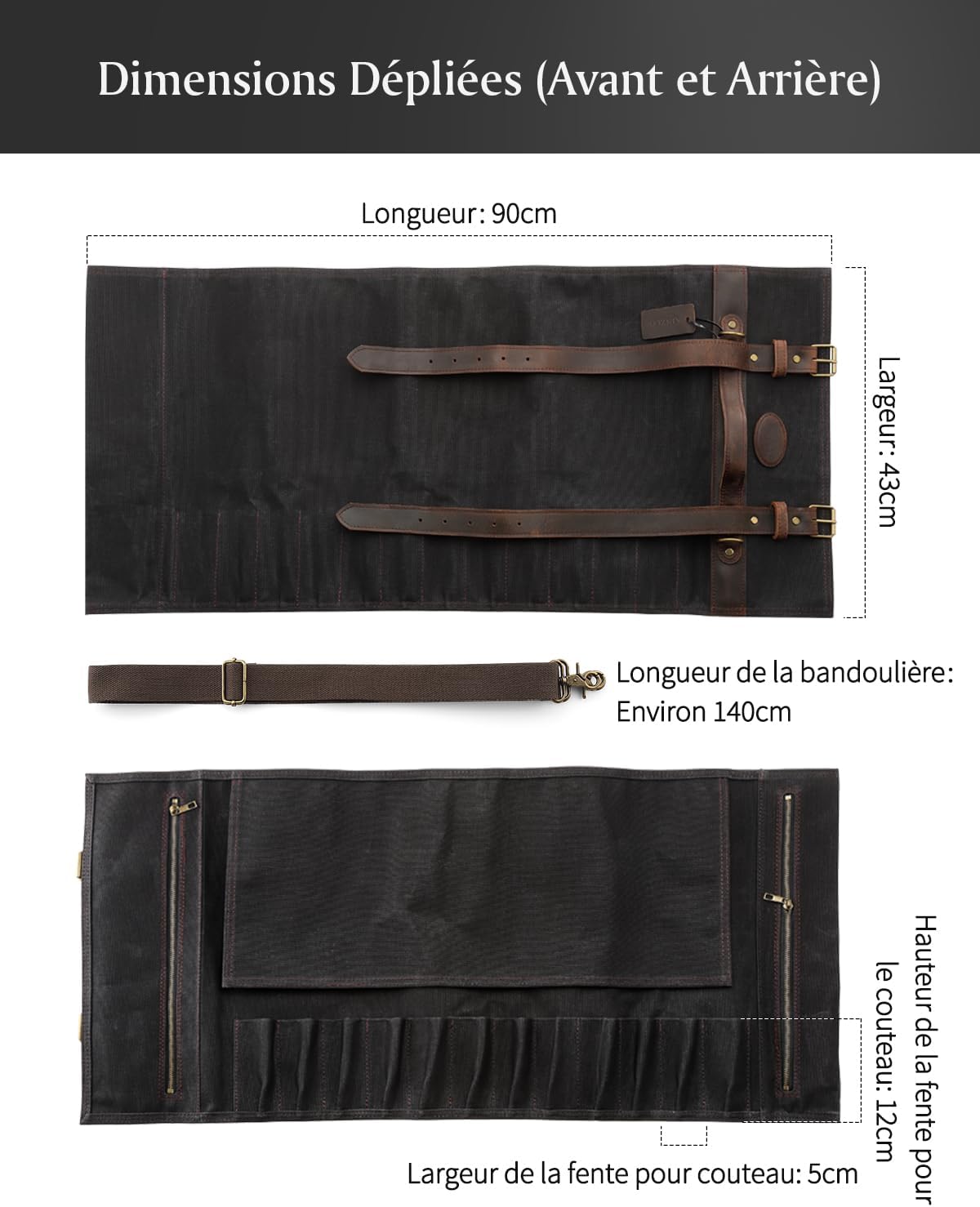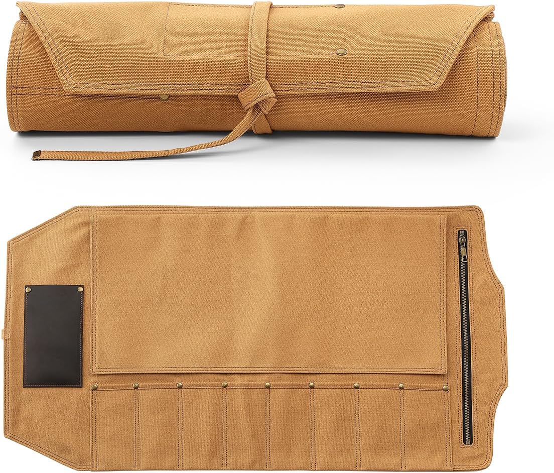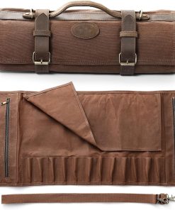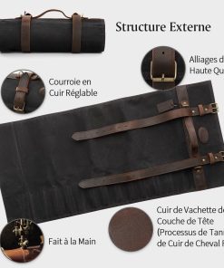 - 【Premium Fabric】 Ce sac pour rouleau de couteau est soigneusement conçu et fabriqué à la main à partir de toile cirée à l’huile 16oz et de cuir Crazy-Horse. Le matériau est durable et résistant à l’abrasion, aux déchirures et aux perforations. Avec des boucles en métal allié de haute qualité , des attaches et un processus de couture à haute résistance, notre sac de rouleau de couteau est plus durable.