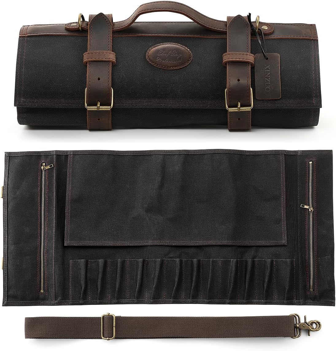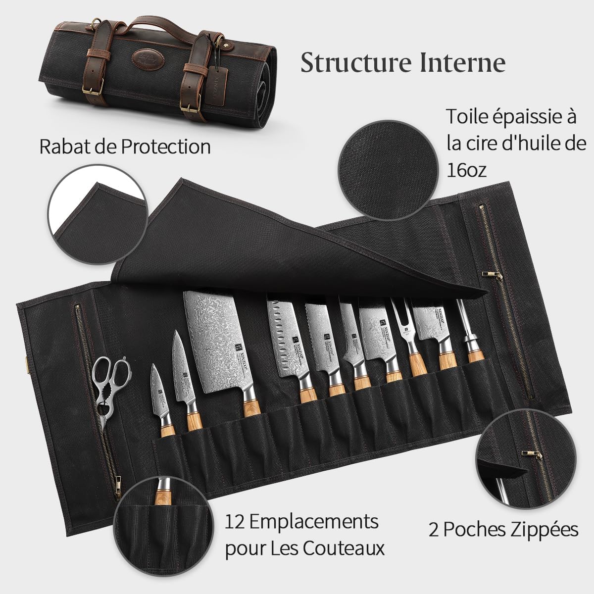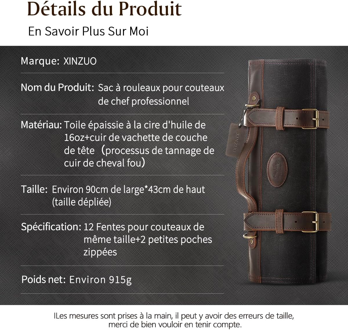 - 【Premium Fabric】 Ce sac pour rouleau de couteau est soigneusement conçu et fabriqué à la main à partir de toile cirée à l’huile 16oz et de cuir Crazy-Horse. Le matériau est durable et résistant à l’abrasion, aux déchirures et aux perforations. Avec des boucles en métal allié de haute qualité , des attaches et un processus de couture à haute résistance, notre sac de rouleau de couteau est plus durable.