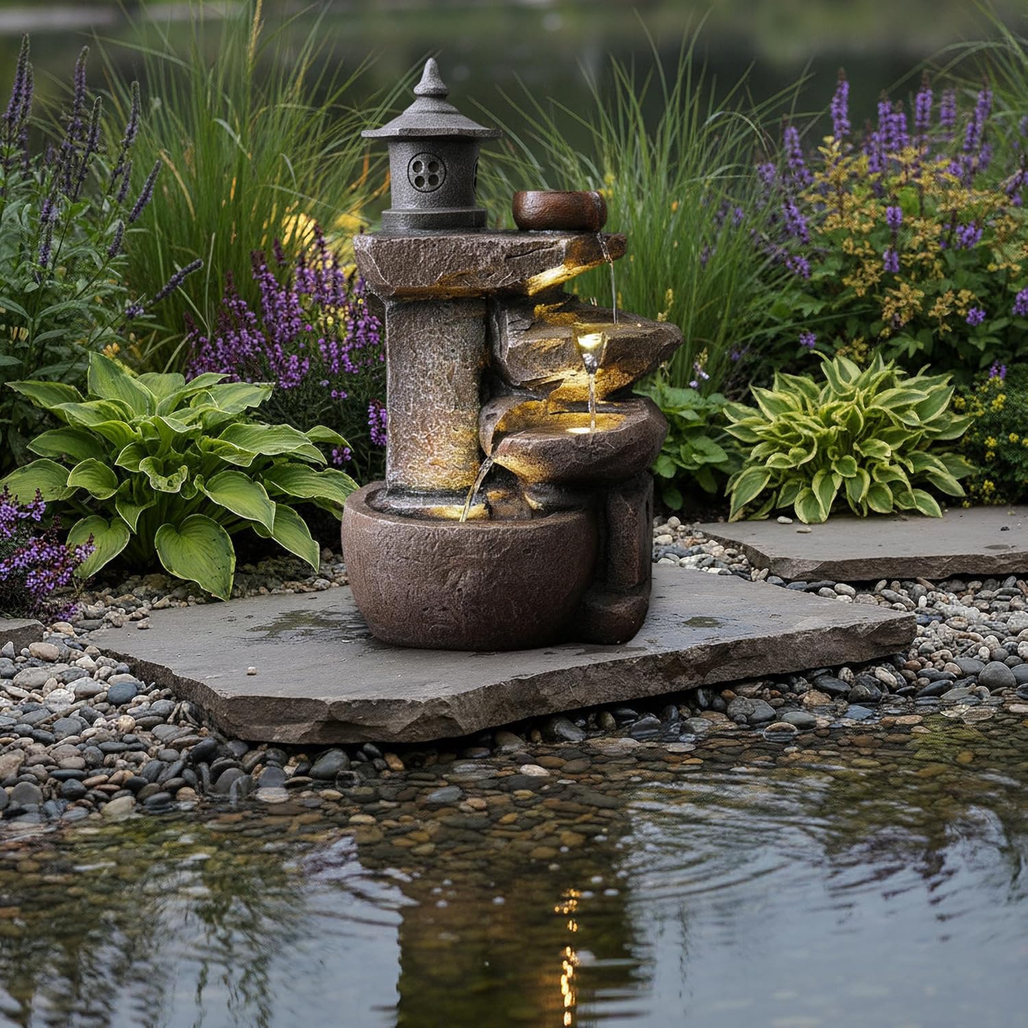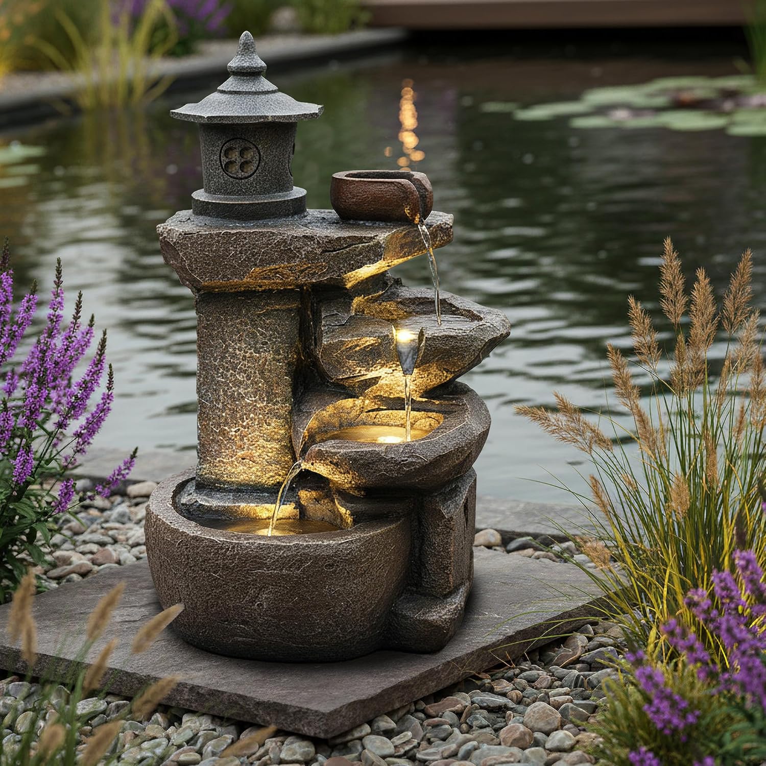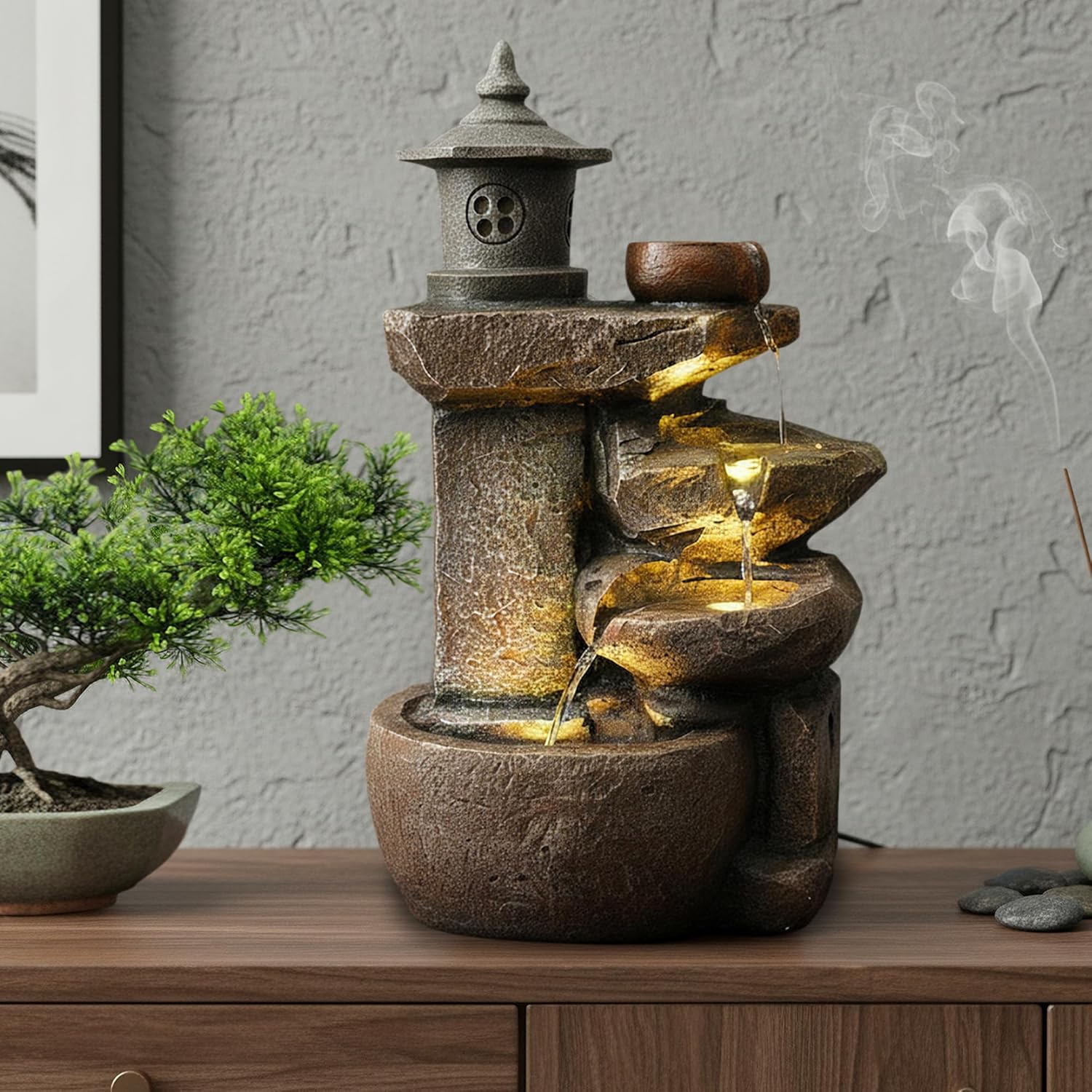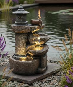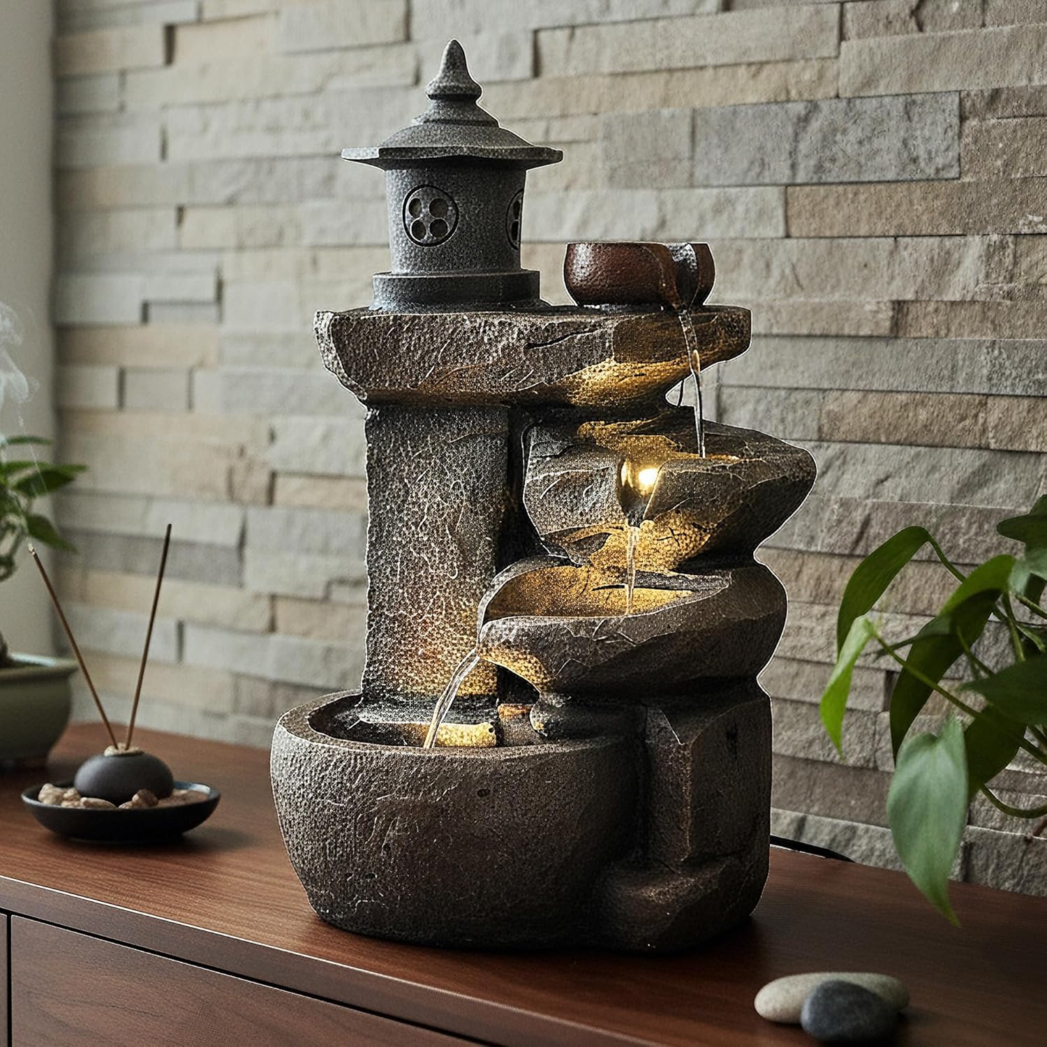 Très belle fontaine, agréable ruissellement, petites lumières zen qui rendent un bel effet, complète notre déco sur le thème zen et asiatique.