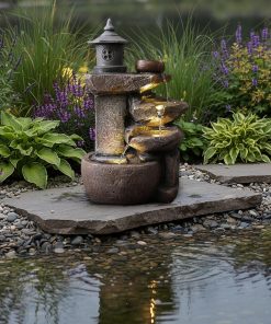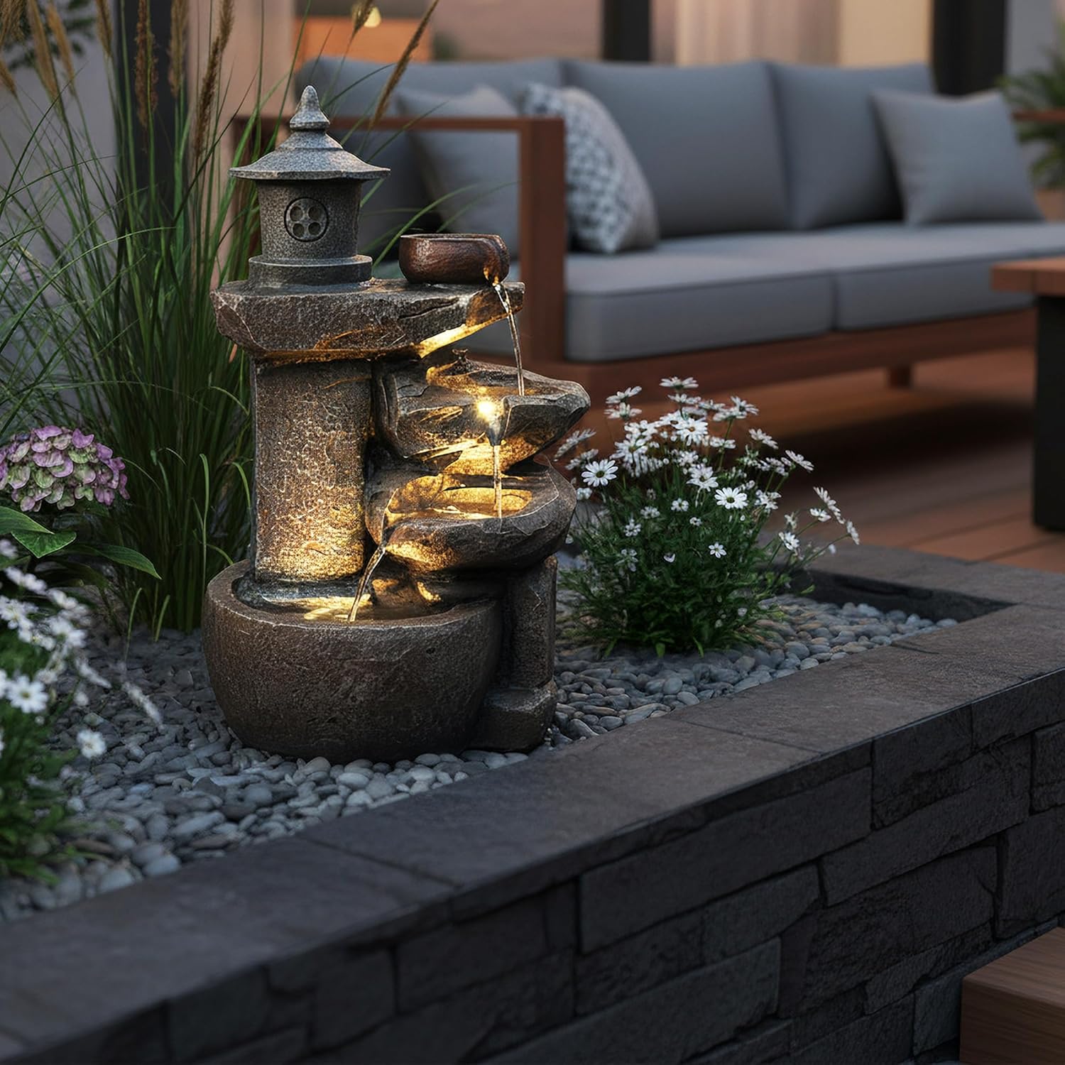 Arnusa BK851 Fontaine Cascade Avec Éclairage – Décoration de Jardin, Intérieur et Terrasse – Marron Gris