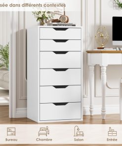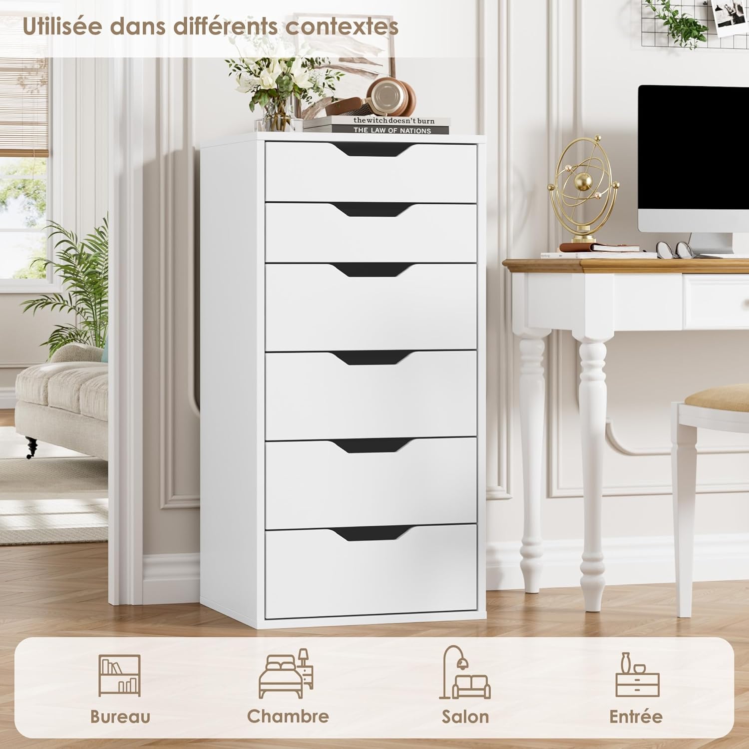 Commode compacte et bien finie, idéale pour optimiser l’espace dans une chambre ou un bureau. Les six tiroirs offrent un rangement pratique et le coloris blanc s’accorde facilement avec différents styles de décoration. Le montage est simple et l’ensemble paraît solide pour un bon rapport qualité-prix.