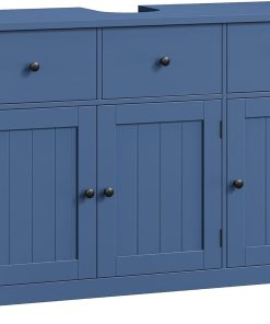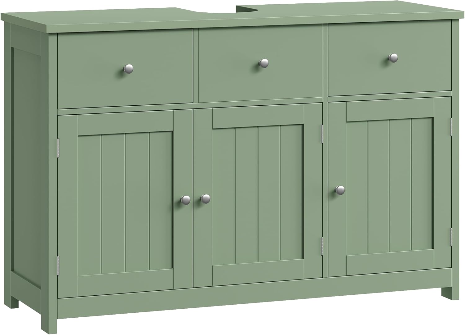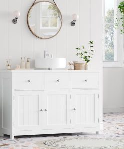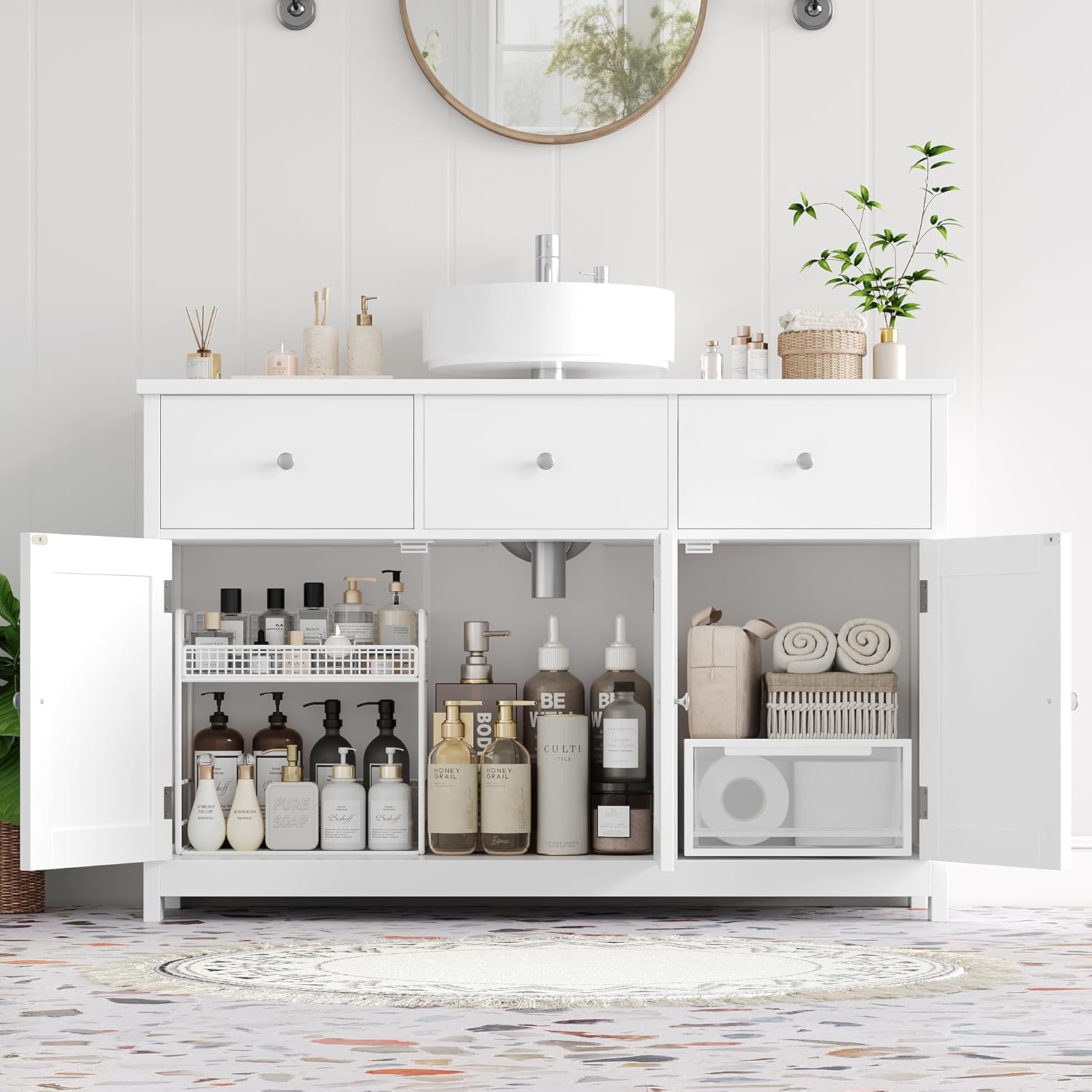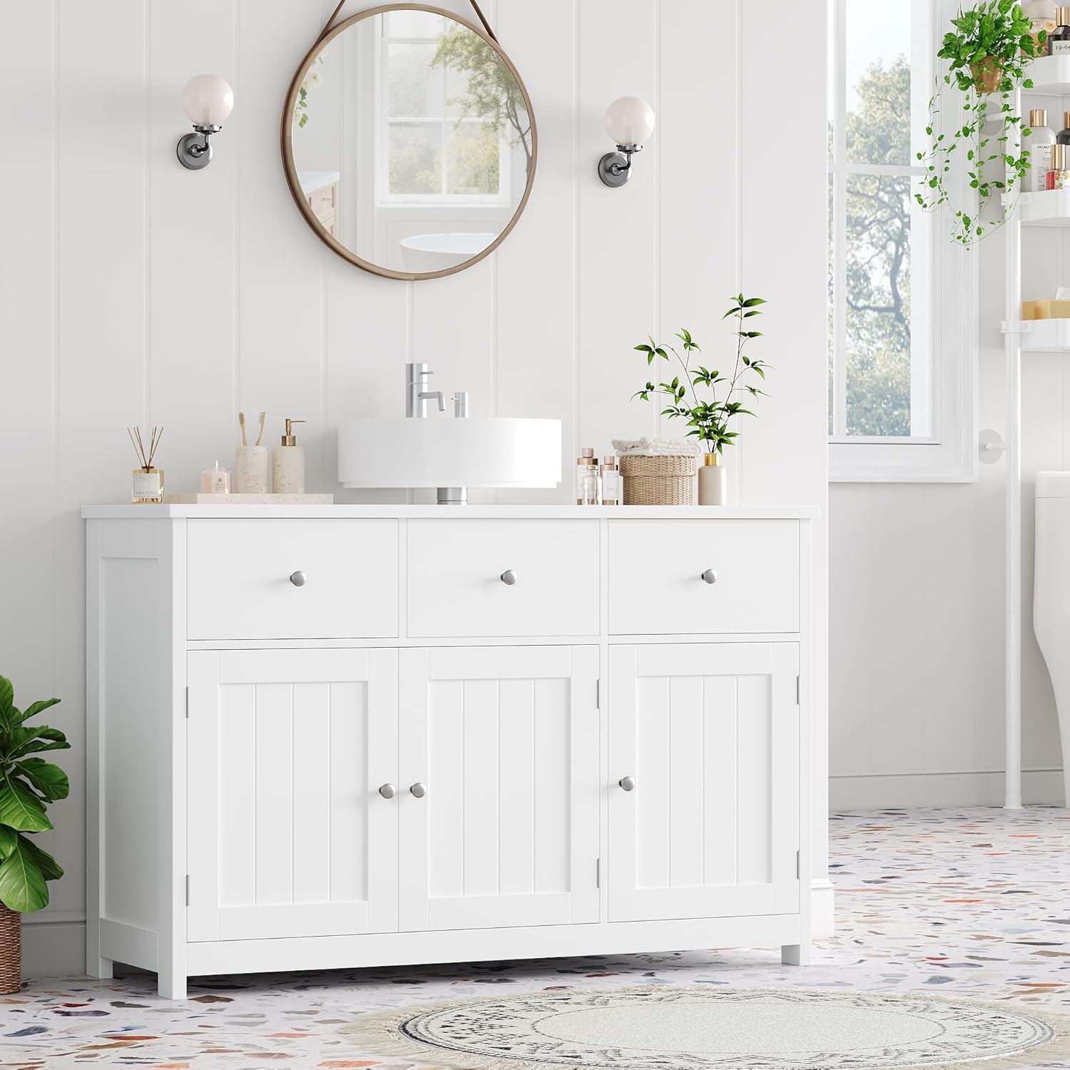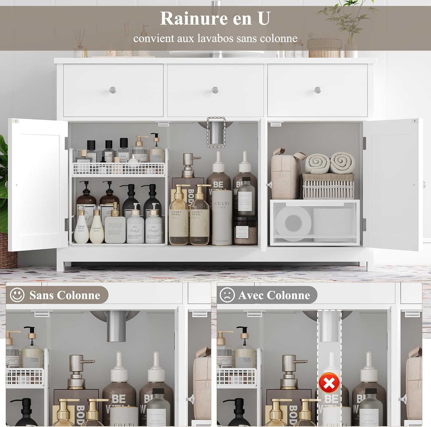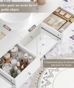 FOREHILL Meuble sous Lavabo 100cm, Meuble de Salle de Bain sous Vasque, Meubles de Salle de Bain Rangement avec 3 Portes 2 Tiroirs sur Pieds 100x30x61cm Blanc