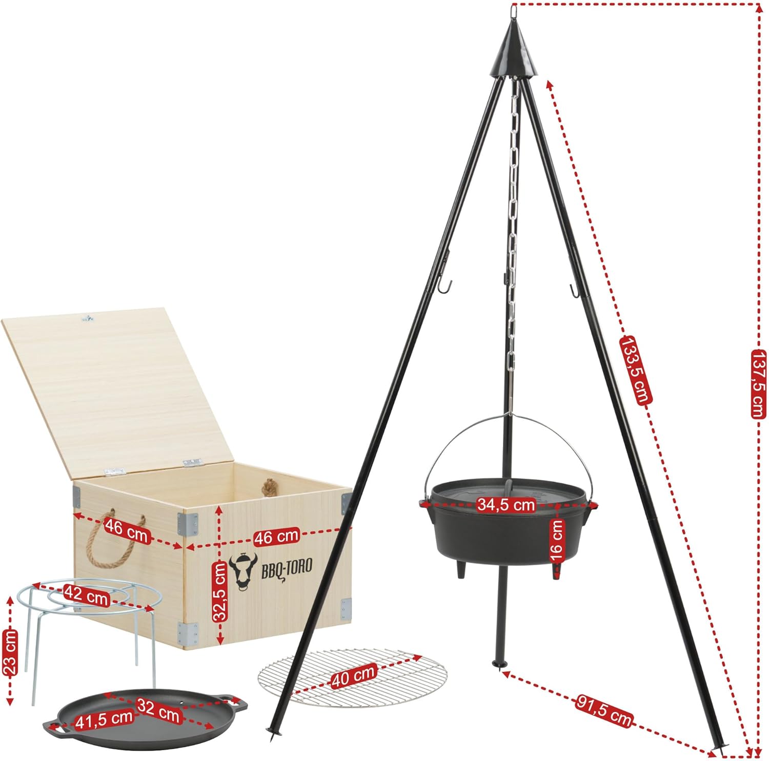 - CADEAU IDEAL | Le set Dutch Oven est le cadeau de Noël idéal pour les amateurs de barbecue, hommes et femmes. L’ensemble est prêt à être emballé dans la boîte en bois BBQ- TOro qui peut être donnée sans autre emballage. La boîte en bois peut également être utilisée comme boîte de rangement pour vos accessoires de barbecue.