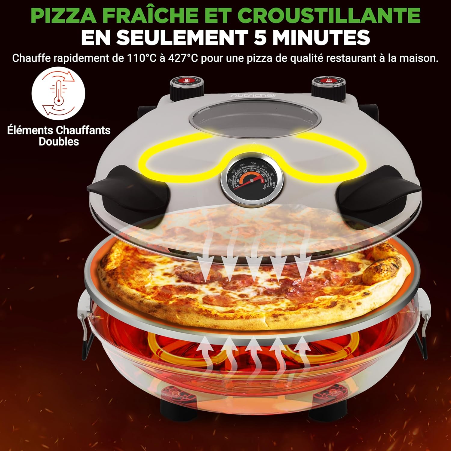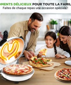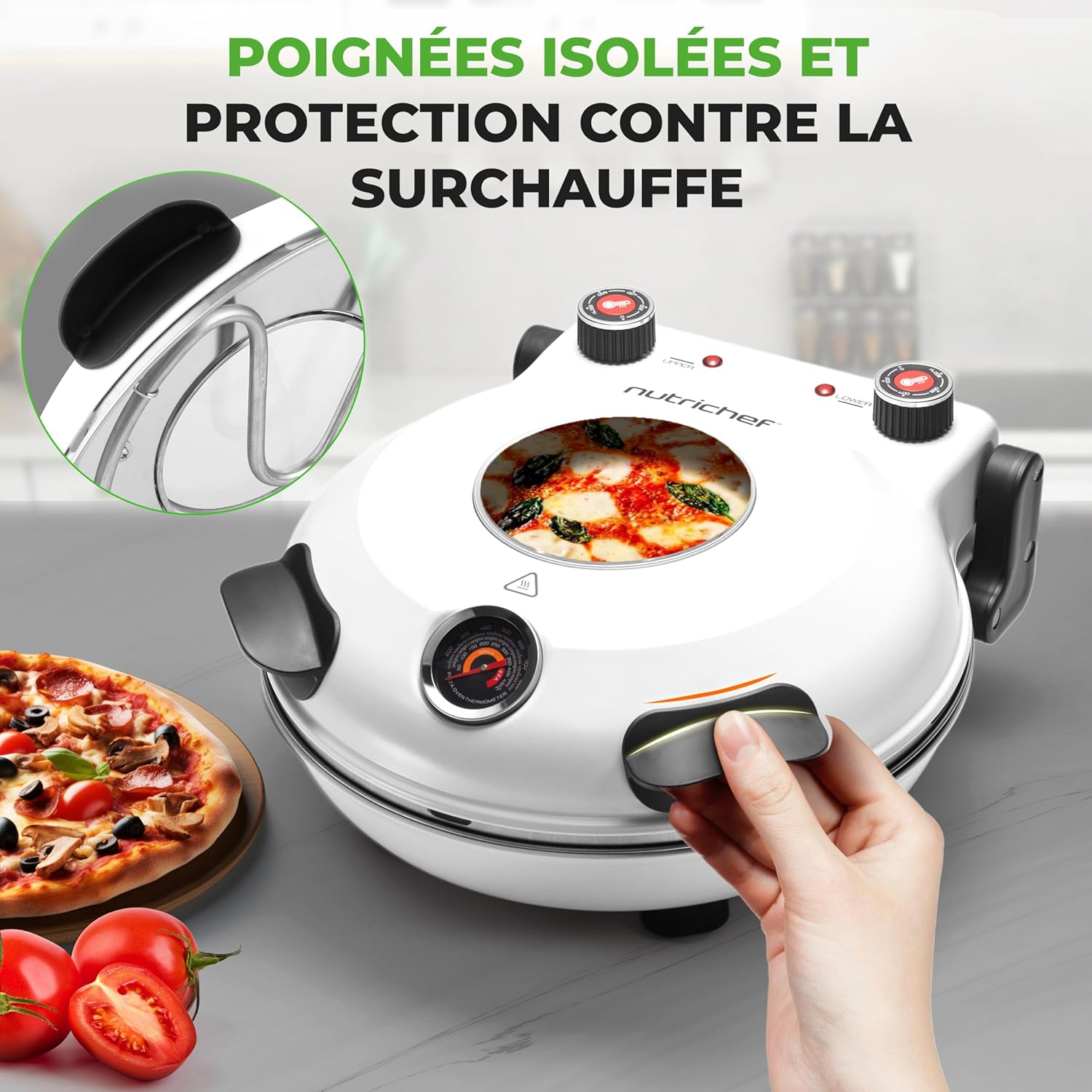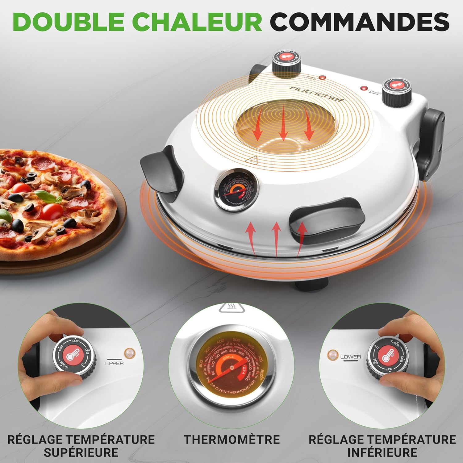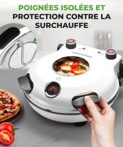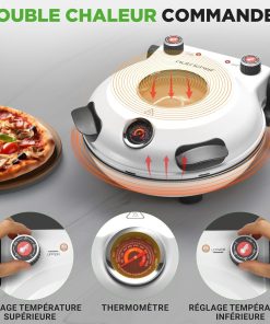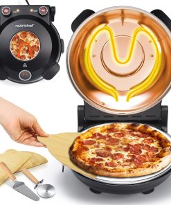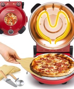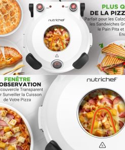 NutriChef Four à Pizza Électrique – Pierre à pizza Ø30 cm avec Thermostat et Thermomètre | Chauffe Jusqu’à 425°C | Cuisson Rapide | Fenêtre de Cuisson | Facile à Nettoyer – Blanc