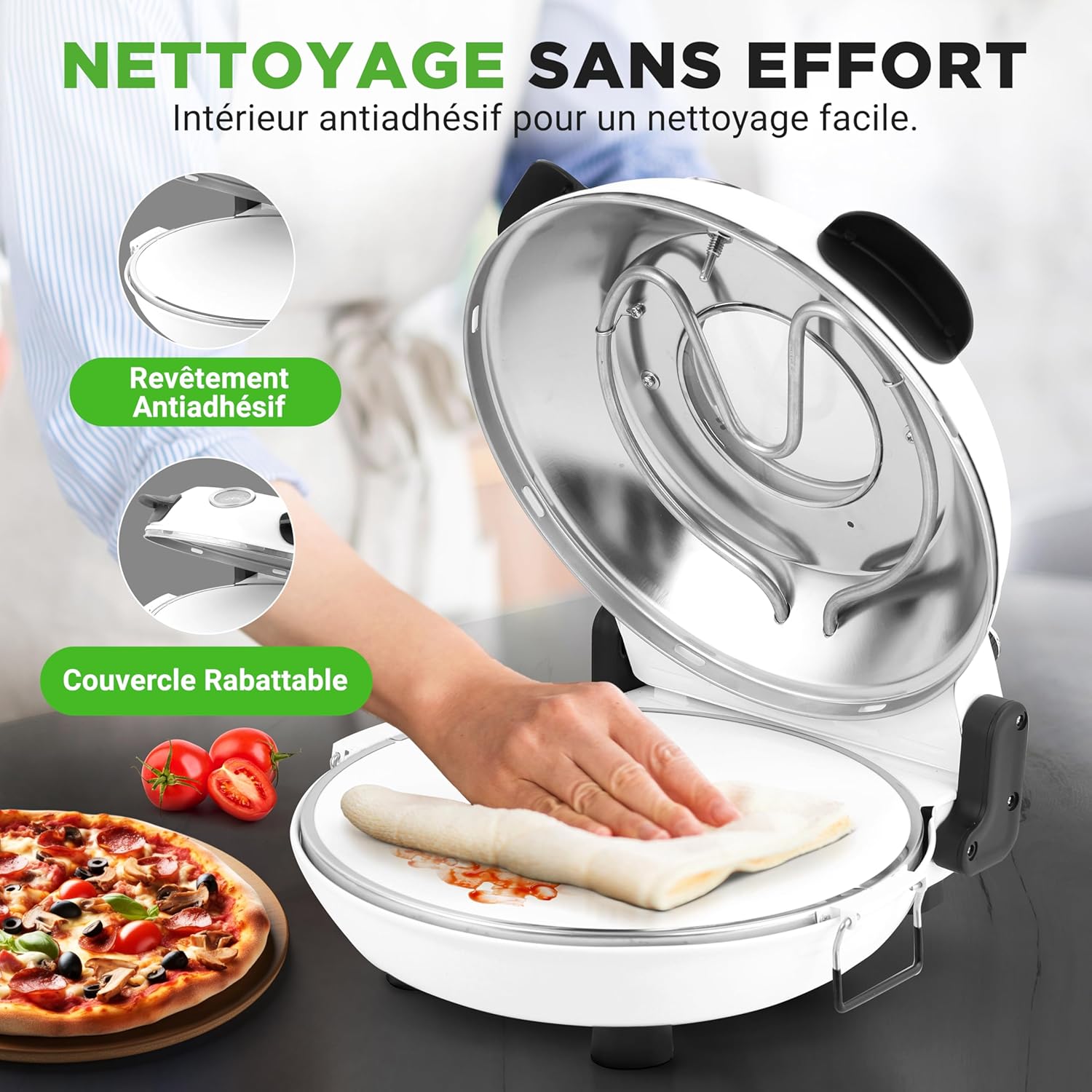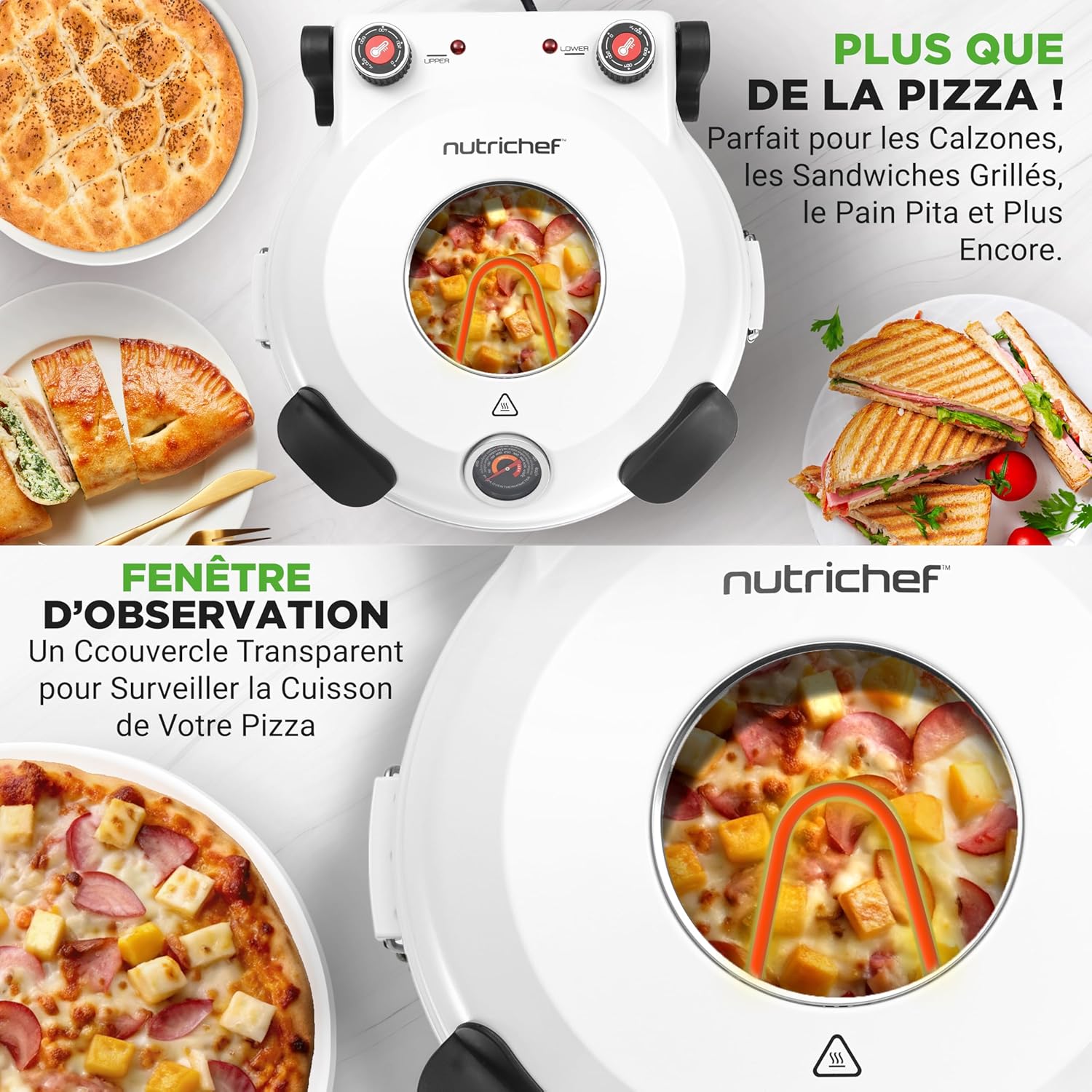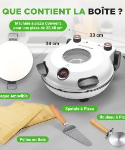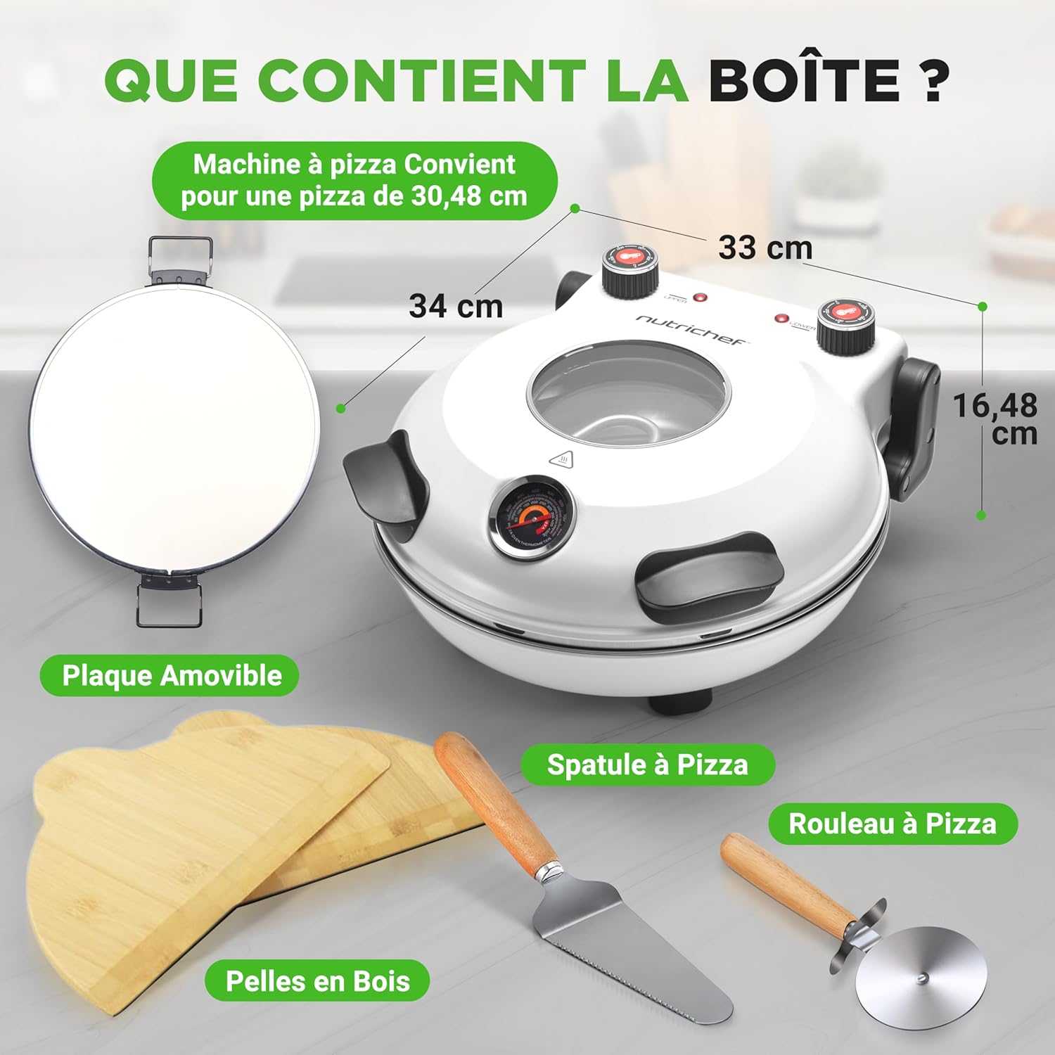 NutriChef Four à Pizza Électrique – Pierre à pizza Ø30 cm avec Thermostat et Thermomètre | Chauffe Jusqu’à 425°C | Cuisson Rapide | Fenêtre de Cuisson | Facile à Nettoyer – Blanc
