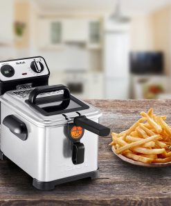 Friteuse électrique avec thermostat qui chauffe rapidement et permet une cuisson parfaite des frites pour 3 à 4 personnes en une seule fois. Tous les éléments se lavent très facilement et le cordon peut s’enrouler derrière l’appareil. Prix nettement inférieur en ligne, nous recommandons.