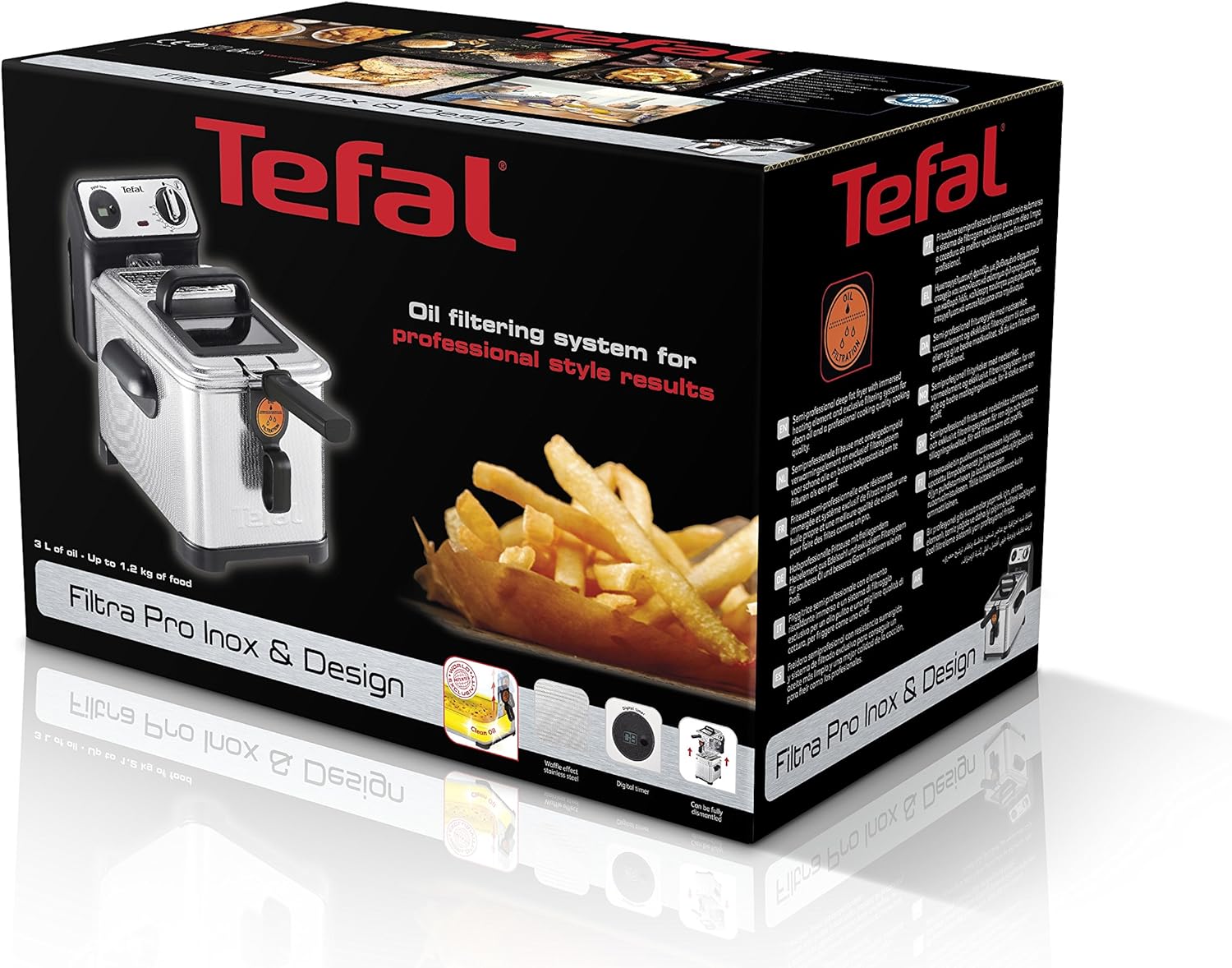 Filtra Pro pour des résultats de fritures professionnels ! Filtra Pro est une friteuse semi-professionnelle dotée de la technologie des zones froides. Cuisinez jusqu’à 1 kg de frites ou 1,2 kg de nuggets, grâce à sa capacité d’huile de 3 L. Son tamis filtrant breveté peut être utilisée après chaque friture, afin qu’il n’y ait pas de résidus et que votre huile reste propre, tandis que son élément chauffant immergé garantit des résultats rapides et parfaits. Le Filtra Pro Inox & Design est entièrement démontable et toutes ses pièces (à l’exception du bloc chauffant) passent au lave-vaisselle. Il est équipé d’un thermostat réglable, d’une minuterie digitale et d’un filtre métallique permanent. De plus, le couvercle peut être utilisé pendant la friture et possède un hublot de contrôle pour surveiller facilement votre cuisson.