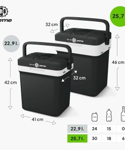 - Grande capacité, fonctionnement silencieux et transport facile – Avec 25,7L de volume, ce frigo voiture offre suffisamment d’espace pour stocker boissons et repas. Fonctionne silencieusement à 26 dB, avec une poignée ergonomique pour un transport aisé – parfait pour le camping et les voyages.
