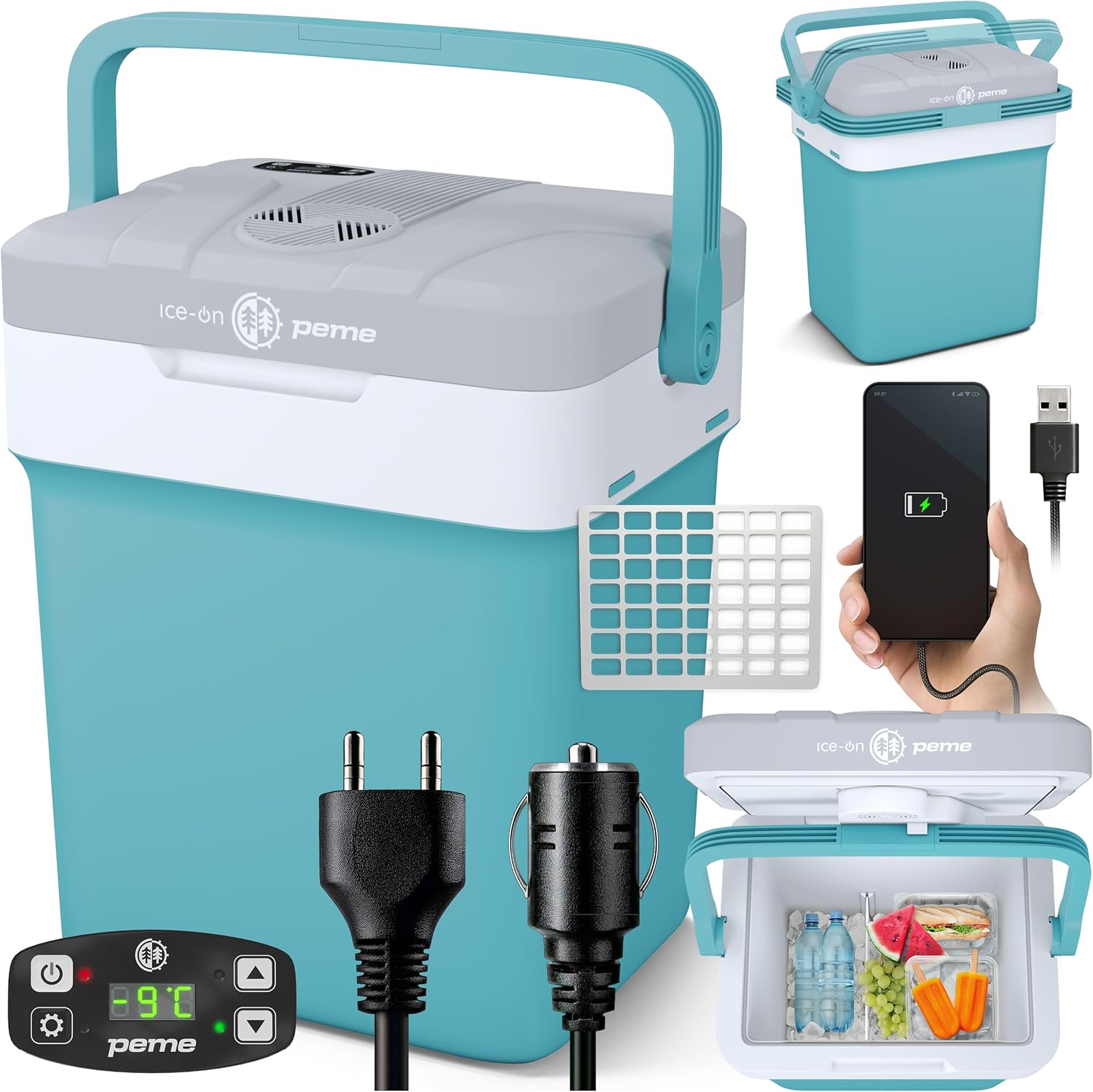 - Refroidissement et maintien au chaud en toute circonstance – Refroidit les aliments et boissons jusqu’à 18°C en dessous de la température ambiante ou les maintient au chaud jusqu’à 60-65°C. Idéale pour les voyages en voiture, le camping ou une utilisation quotidienne.