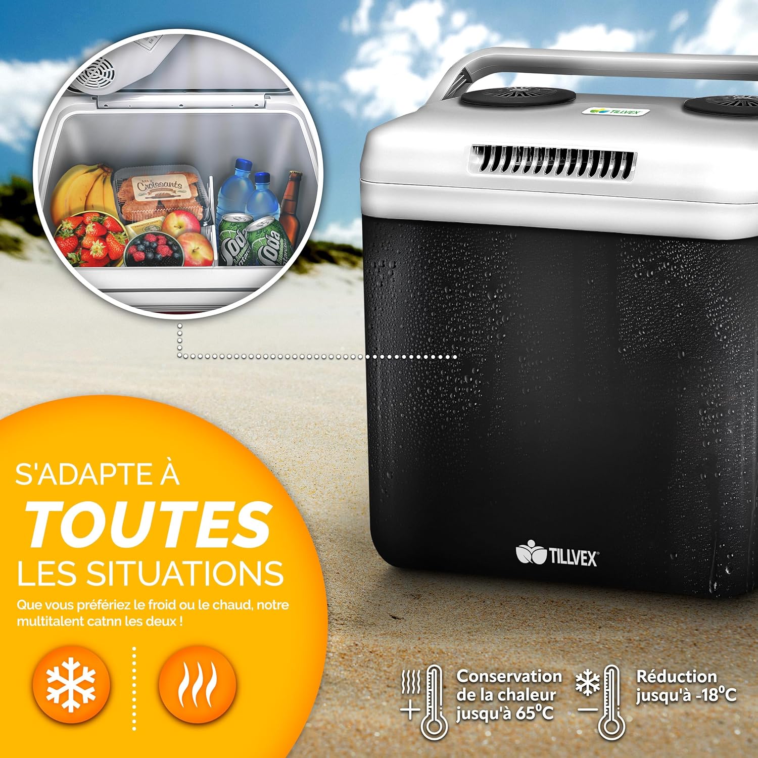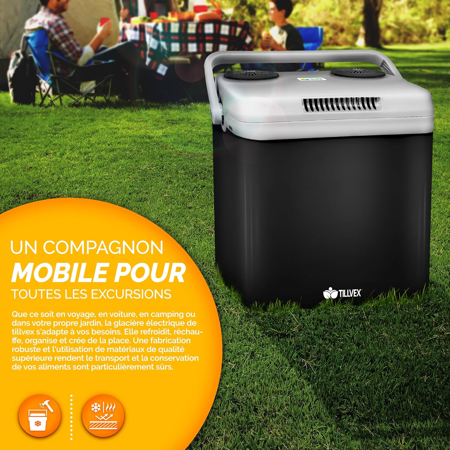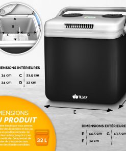 - FONCTION FROID ET CHAUD : La fonction refroidissante permet de réduire la température de jusqu’à 18° C par rapport à la température ambiante. La fonction chauffe-plat intégrée permet de garder des plats au chaud à une température max. de 65° C. Ainsi, les aliments et les boissons restent au chaud et au froid dans cette glacière d’un volume de 32 litres.