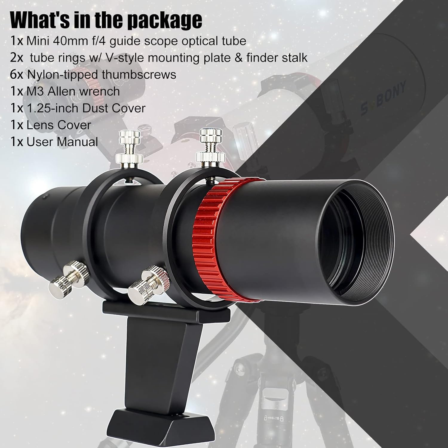 - 40F4 mini guide scope; léger et adapté à la photographie du ciel profond ; aide le télescope ou l’OTA avec un suivi précis