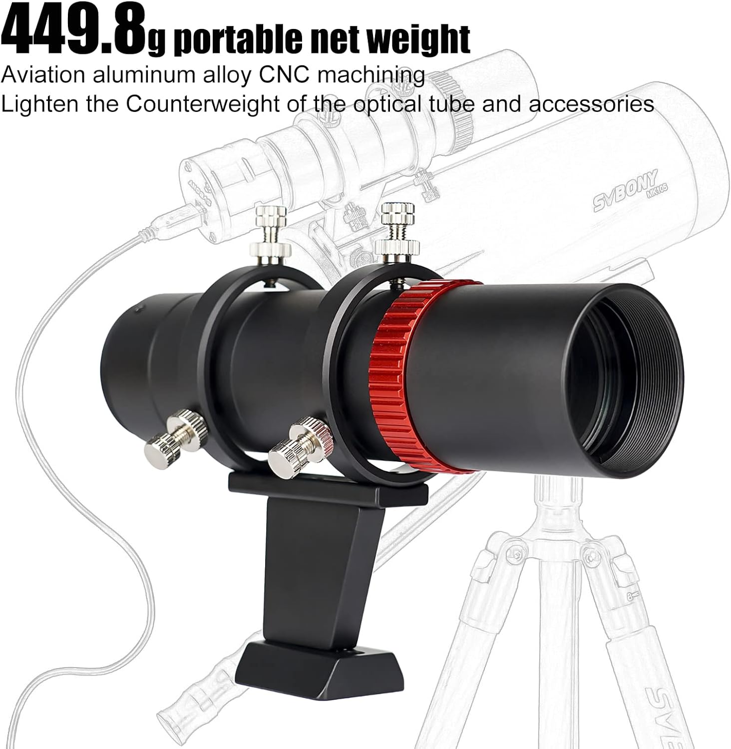 - Poids net portable de 449,8g ; allège le contrepoids du tube optique et des accessoires ; facilite le réglage de l’équilibre du centroïde