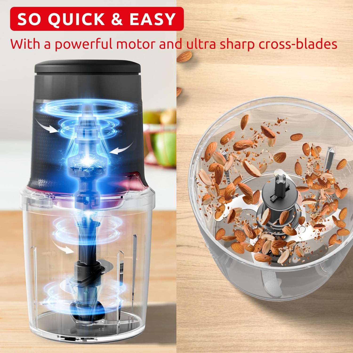Découvrez votre nouvel accessoire de cuisine indispensable pour des résultats rapides, faciles et sûrs! Guacamole, viande émincée, herbes ou oignons hachés: le hachoir électrique Easy Press promet des résultats inégalés sur simple pression d'un bouton, le tout en toute sécurité grâce à notre technologie Safe Start Advanced brevetée. Grâce à sa polyvalence, vous pourrez mixez, hachez, émincez et obtenir des résultats parfaits en toute simplicité grâce à la fenêtre transparente. Contenu:mini hachoir électrique