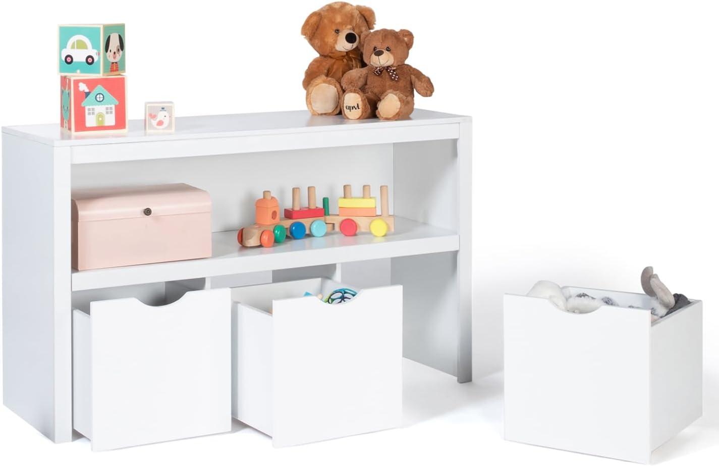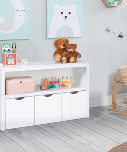 IDMarket – Meuble de Rangement Enfant Mana en Bois Blanc 3 tiroirs Cubes sur roulettes