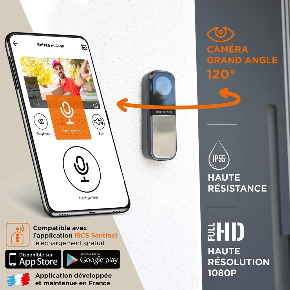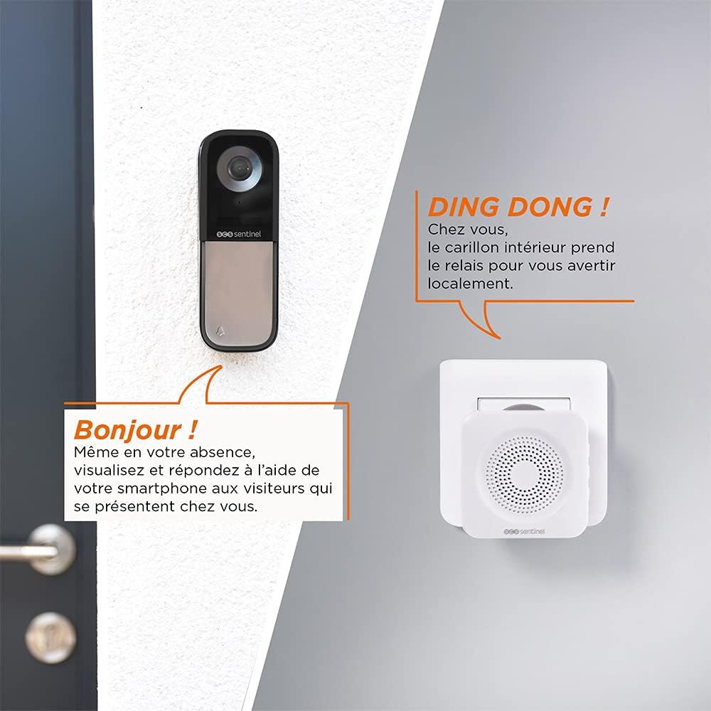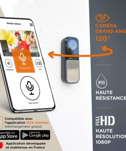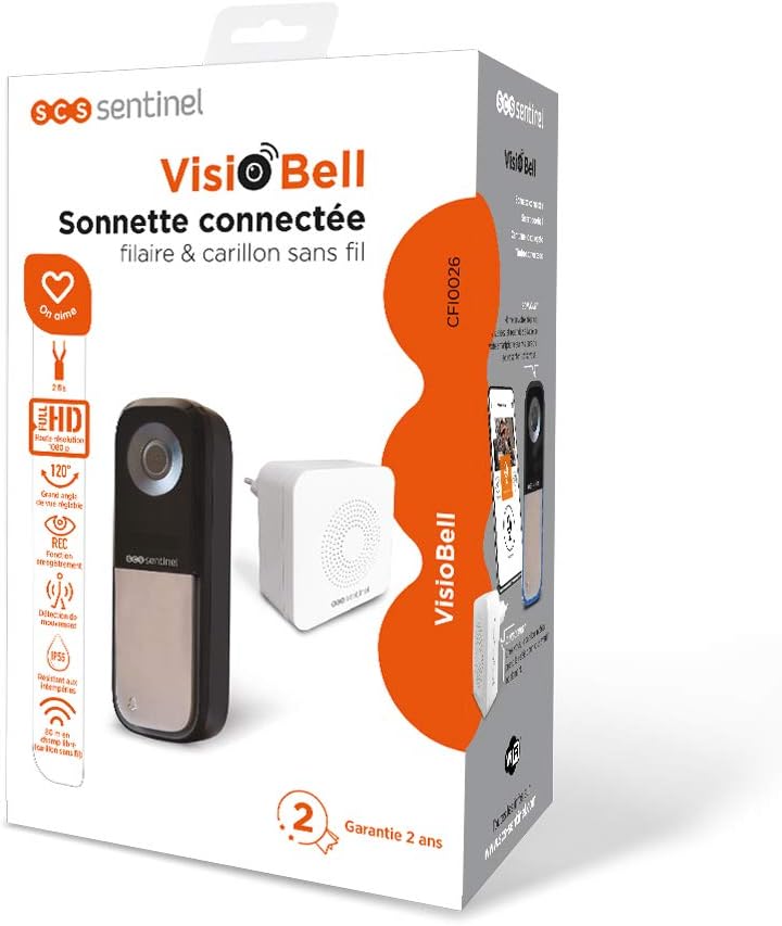 SCS Sentinel – CFI0026 SCS Sentinel – Sonnette connectée filaire & carillon sans fil – Portée 80 mètres – caméra grand angle 120° et orientable verticalement jusqu’à 25° – VisioBell