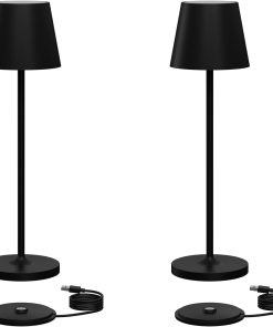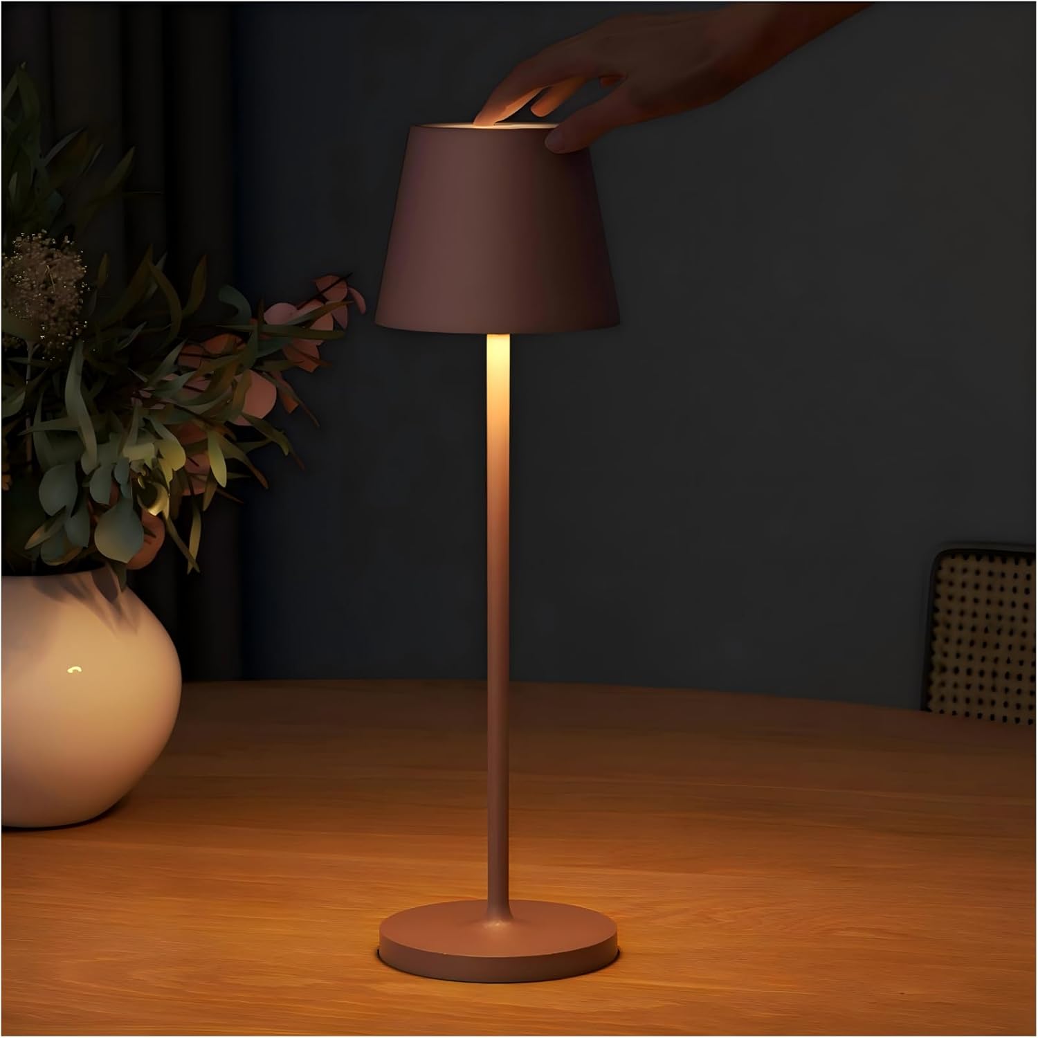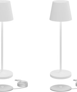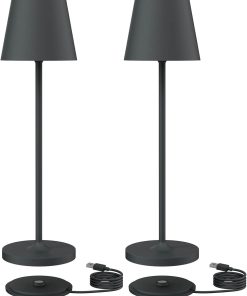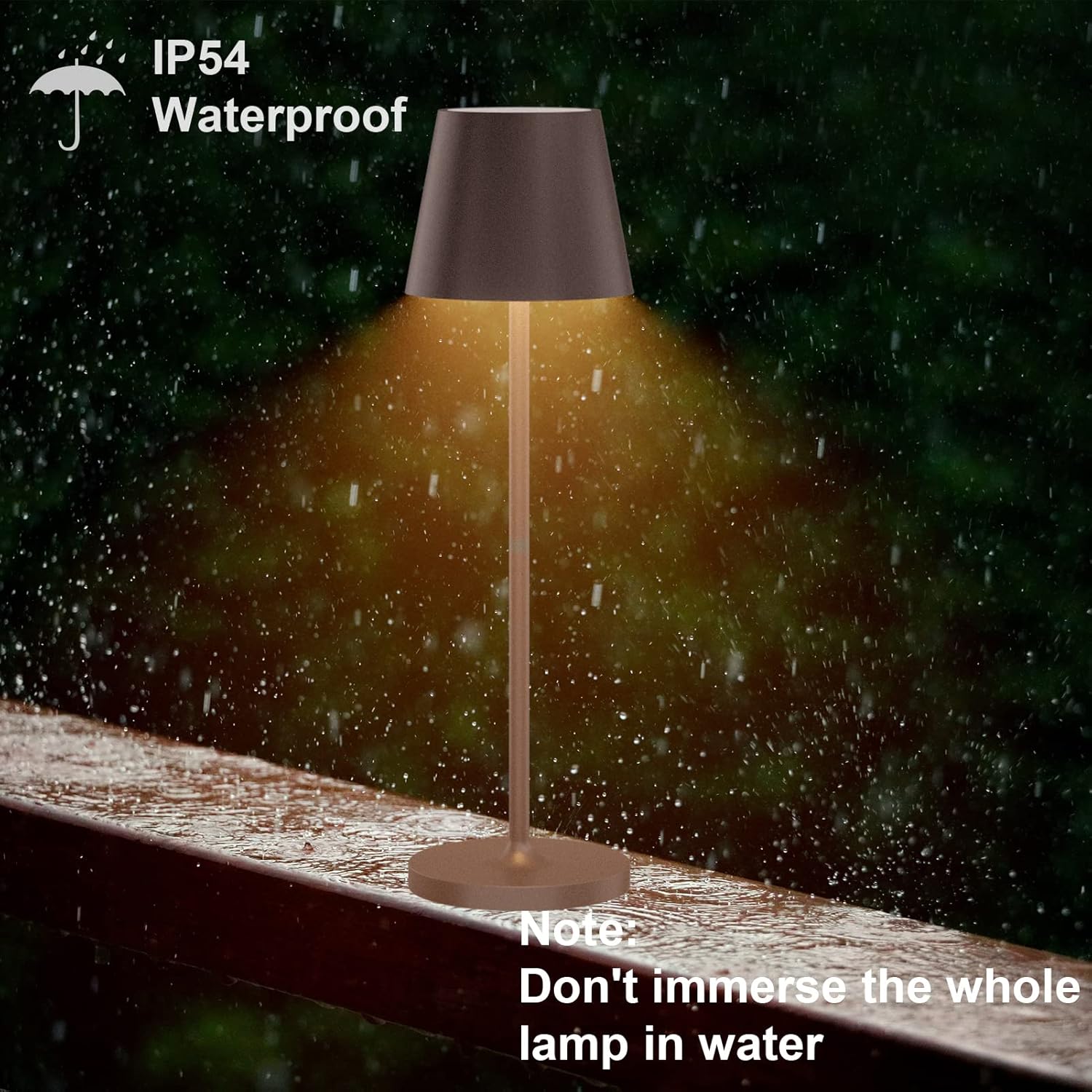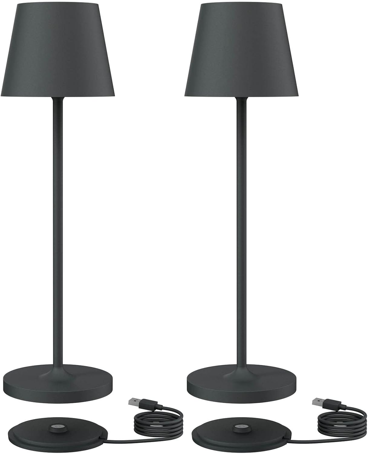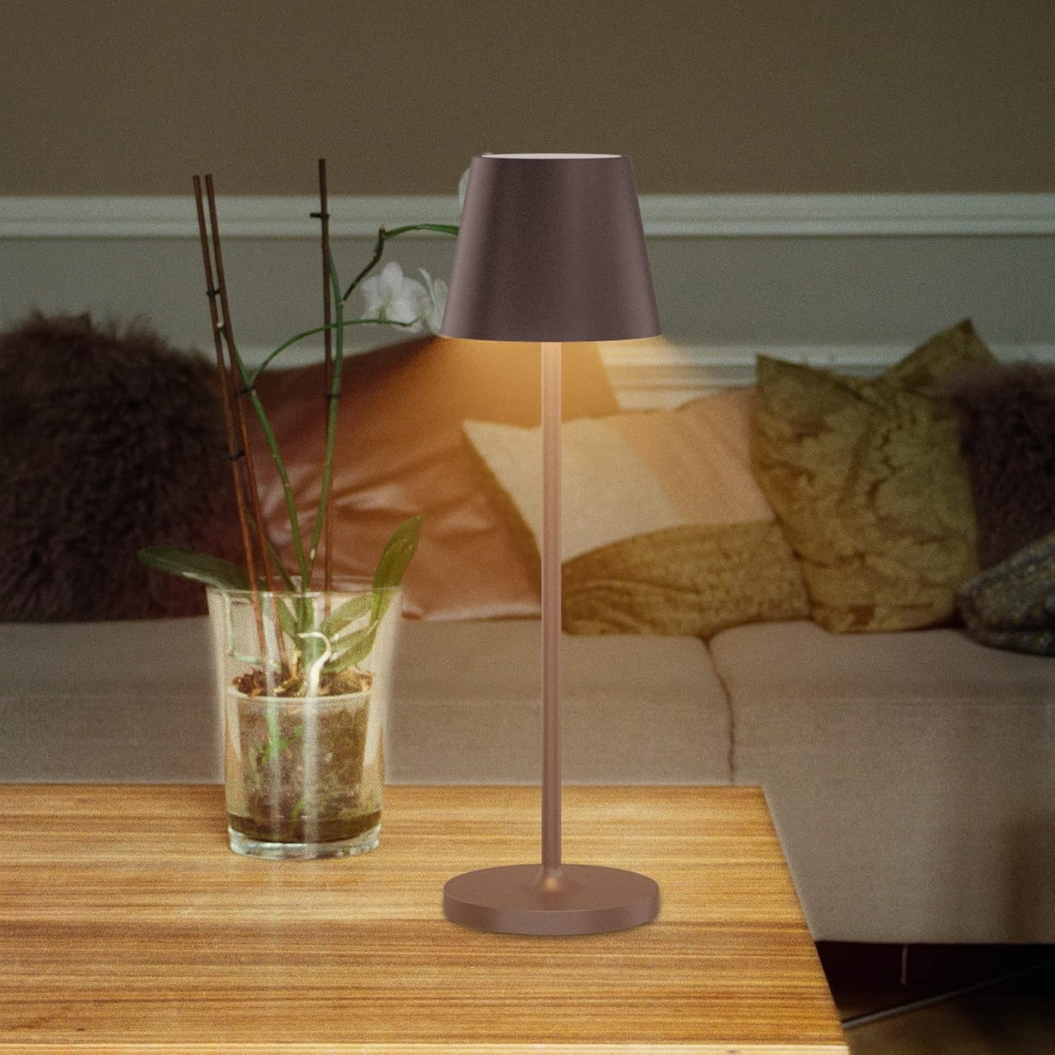 Klighten Lot de 2 LED Lampe de Table Dimmable, Rechargeable Lampes de Bureau avec Station de Chargement USB, Lumière Chaude 3000K, Couleur Rouille, IP54, Aluminium, pour Intérieur/Extérieu