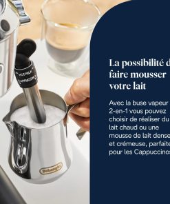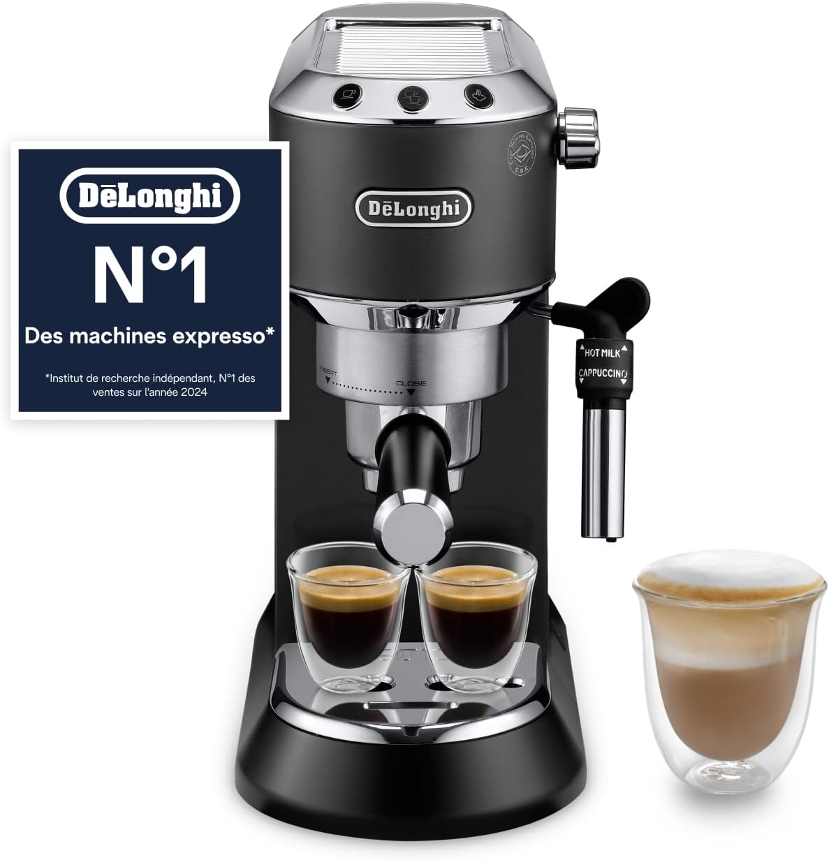 J’adore cette petite machine De’Longhi Dedica : très compacte, elle chauffe vite et prépare des expressos riches avec une belle crème. La buse vapeur permet de faire facilement une mousse onctueuse pour les cappuccinos, le réservoir de 1 L est pratique et le boîtier en métal donne une impression de solidité. Simple à utiliser et à nettoyer, elle offre un excellent rapport qualité-prix.