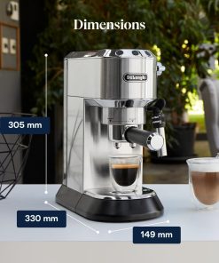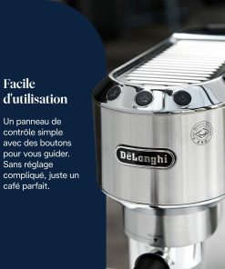 Machine compacte et efficace, la De’Longhi Dedica chauffe rapidement et délivre des expressos riches et crémeux; la buse vapeur mousse le lait très bien pour des cappuccinos, le corps métal est élégant et le réservoir de 1 L suffisant pour plusieurs usages quotidiens. Facile à utiliser et à nettoyer, compatible E.S.E., excellente qualité pour le prix.