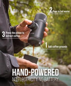 - [OBTENEZ LE MEILLEUR DE LUI] Pas besoin de batterie / Ă©lectricitĂ©. Fonctionnement manuel uniquement! DĂ©couvrez le plaisir de boire un expresso de haute qualitĂ©, de la première gorgĂ©e Ă la dernière goutte, oĂą que vous soyez. Tout ce dont vous avez besoin pour votre prochain espresso est du cafĂ© moulu, de l’eau chaude et la machine Nanopresso.