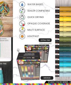 - Pointe moyenne en fibre : facilite la couverture de grandes surfaces et est idéal pour dessiner, tracer ou faire des points mandala. La pointe en fibre peut être retirée et remplacée selon les besoins. Les stylos de peinture sont parfaits pour éviter le désordre qui vient généralement avec les pinceaux de nettoyage et le versement de peinture.