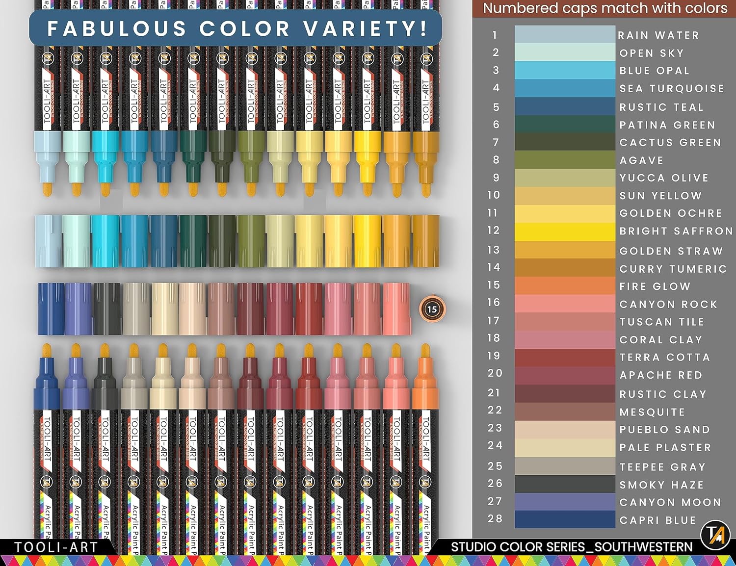 - ️Magnifiques couleurs du sud-ouest Dans le cadre de la série Studio Color, vous obtenez 28 couleurs spécialement choisies qui sont parfaites pour peindre tout ce qui concerne le sud-ouest. Peignez de beaux paysages désertiques, textiles, architecture, cactus et nature avec cette collection de couleurs à thème unique. Ajoutez ces magnifiques couleurs à votre collection dès aujourd’hui
