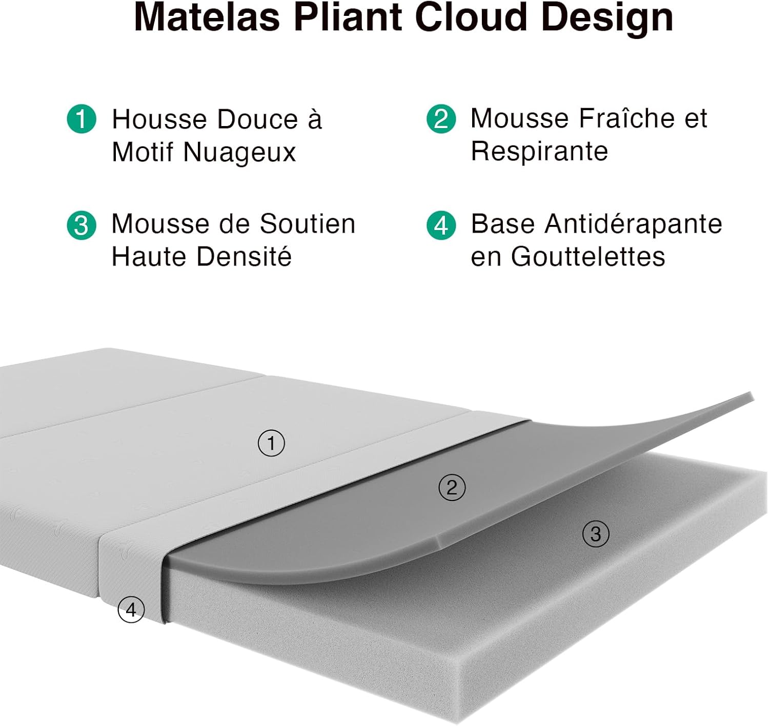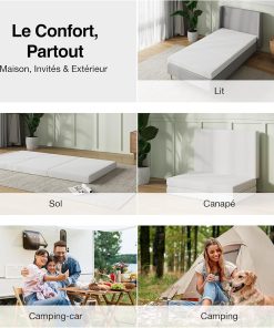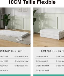 - 💙 【FACILE À PORTER】Facile à plier et à transporter, ce matelas s’adapte à différents usages : lit pour invités, couchage pour camping, van ou soirées pyjama. Il se range aisément dans un placard ou un coffre de voiture grâce à son format compact.