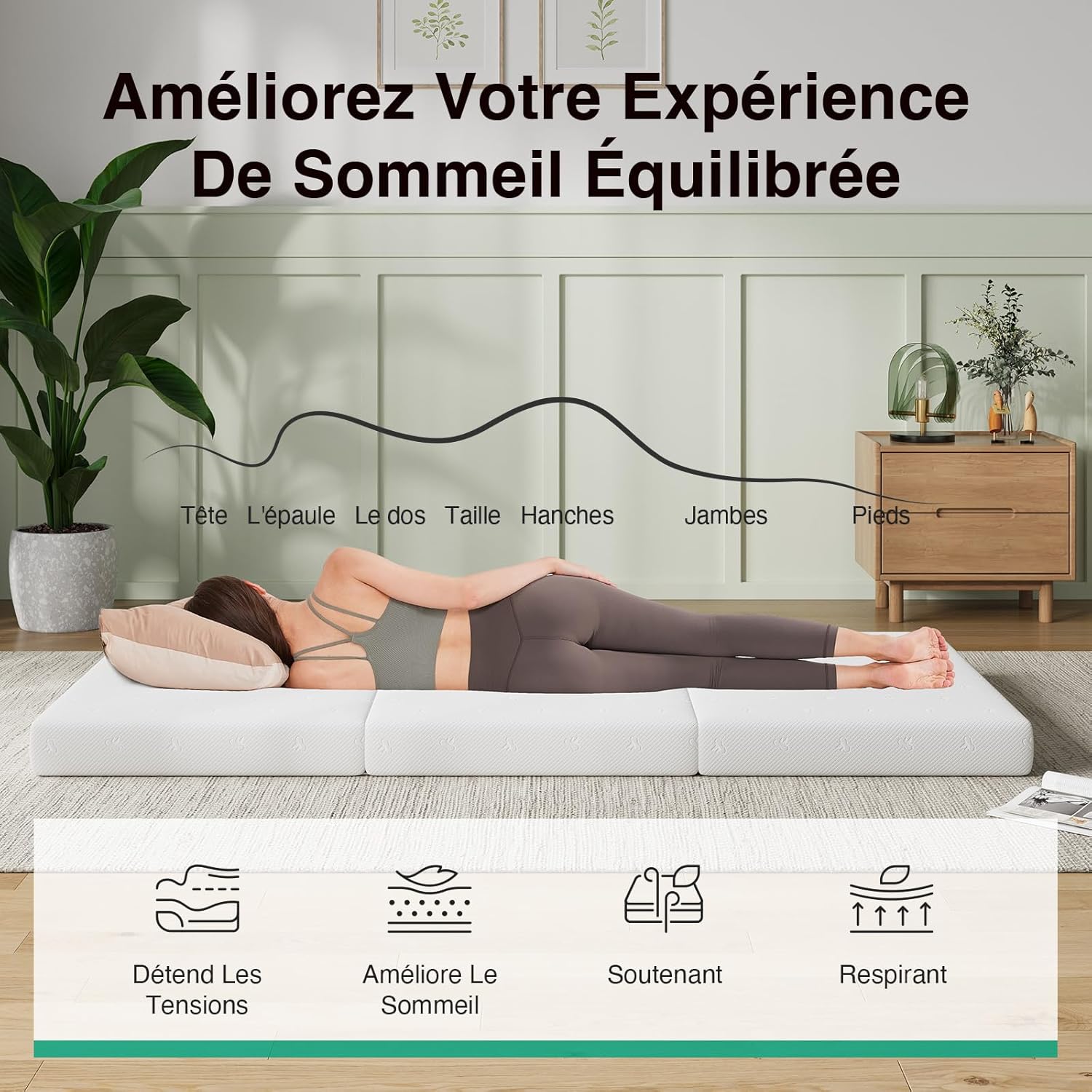 - 💙 【SOUTIEN STABLE】Épais de 10 cm, ce matelas combine deux mousses haute densité : l’une pour plus de confort, l’autre pour un bon maintien. Le dessous antidérapant assure une excellente stabilité, même sur des surfaces lisses ou dures.