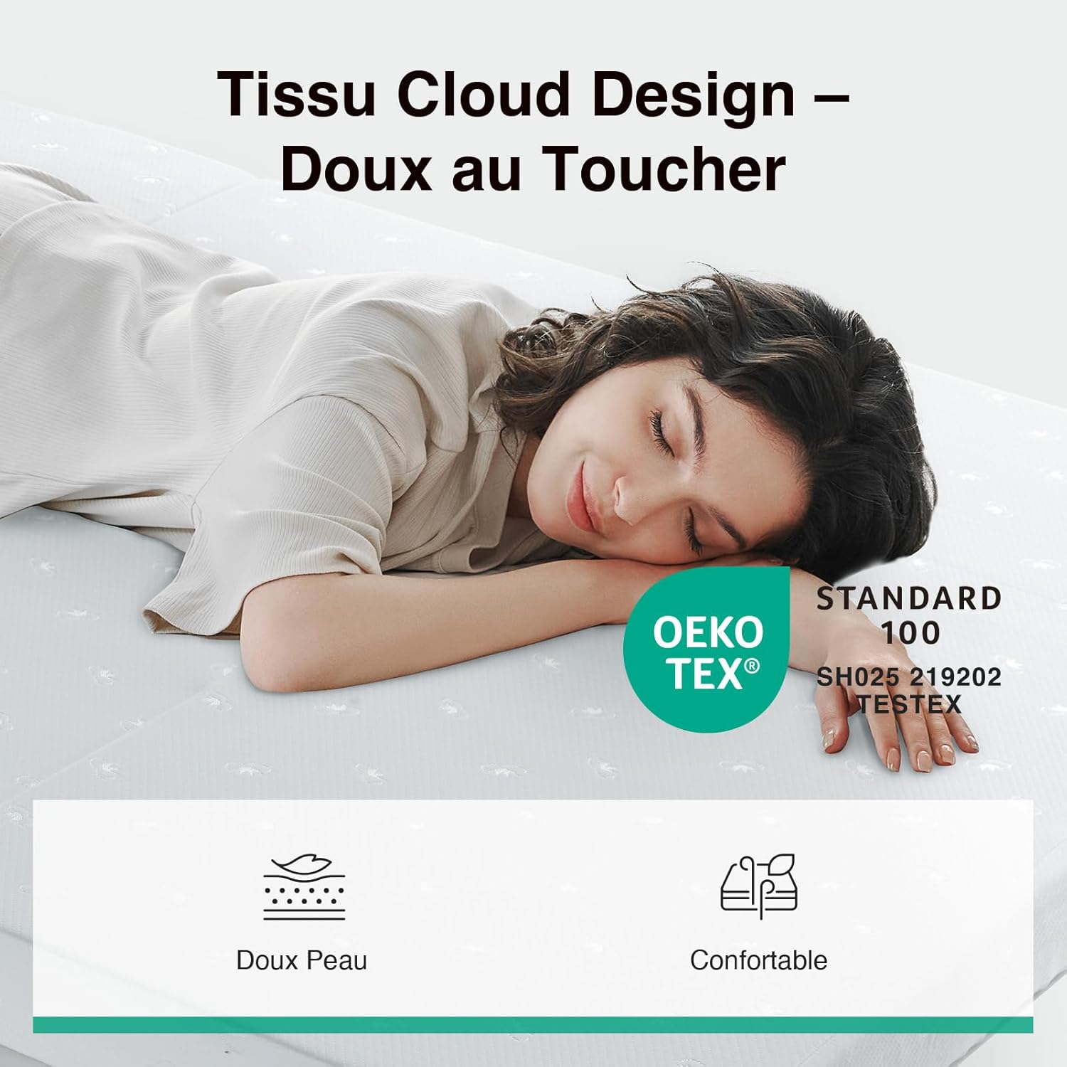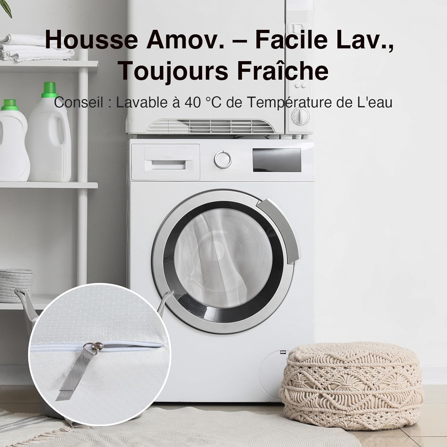 - 💙 【SOMMEIL SAIN】Mousse aérée avec structure à canaux favorisant la circulation de l’air pour éviter la chaleur et les mauvaises odeurs. Sa housse tricotée douce est lavable en machine. Matériaux certifiés CertiPUR-US et OEKO-TEX pour un sommeil sain et sûr.