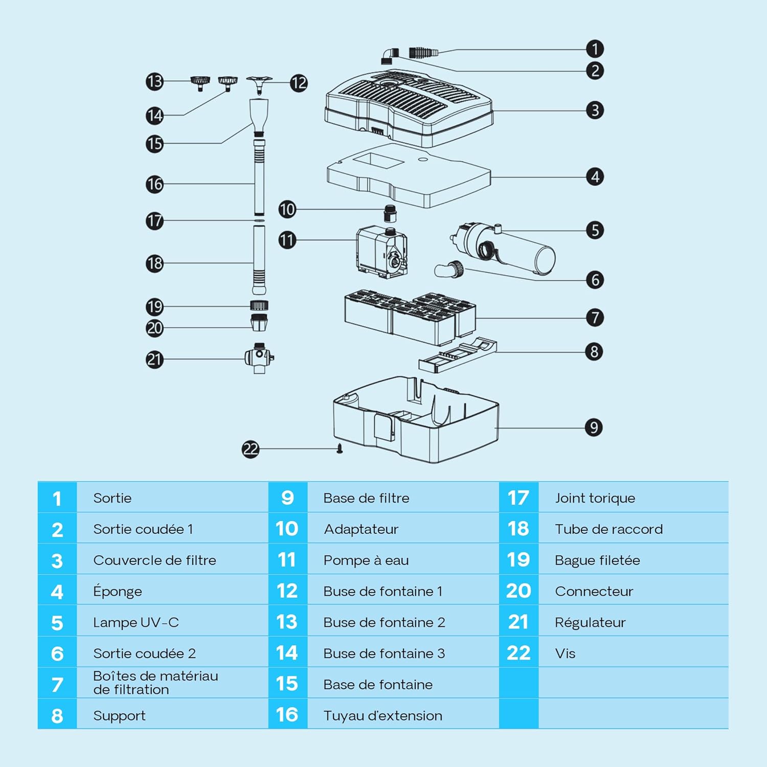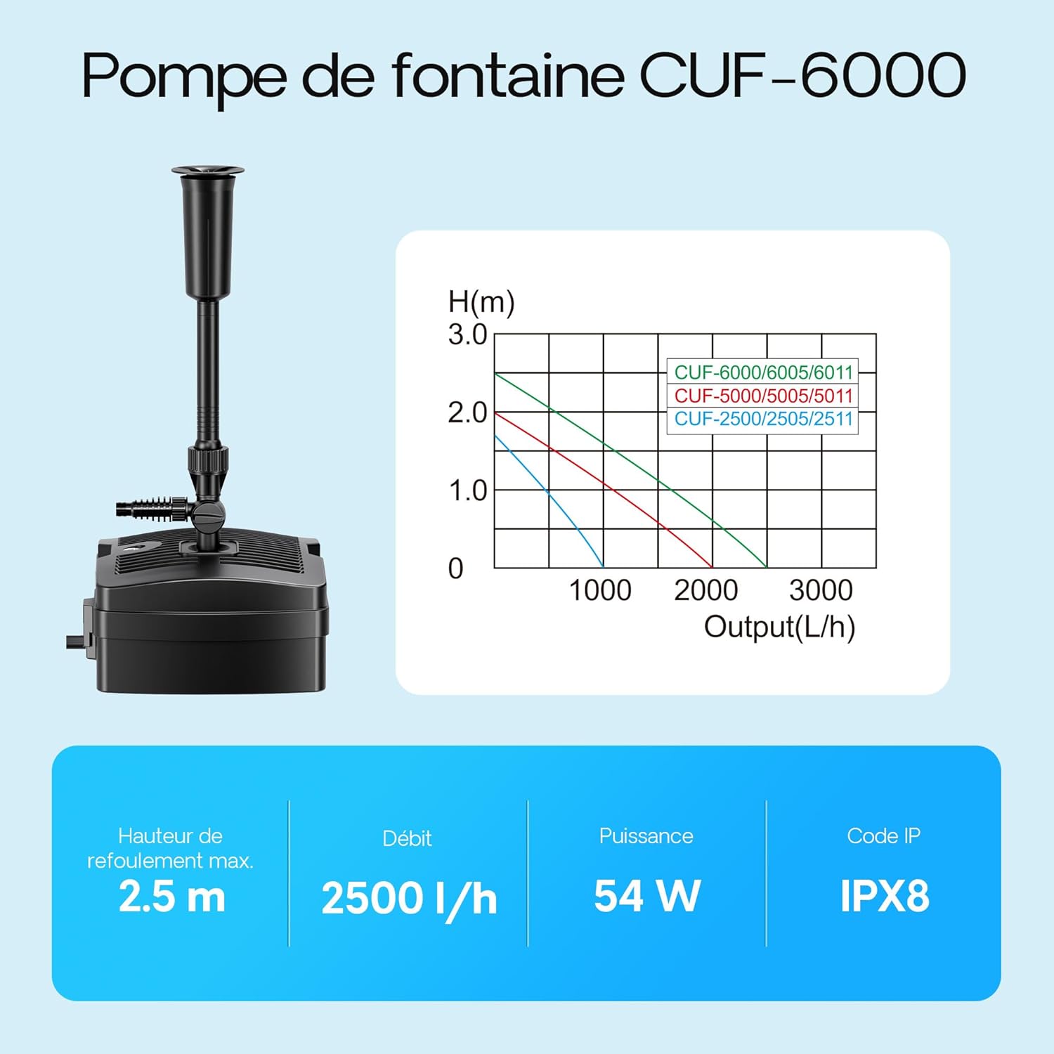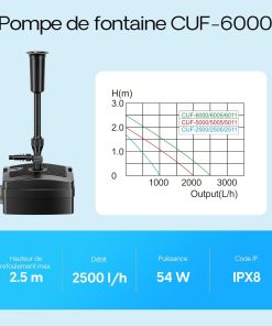 SunSun CUF-6000 Filtre, Pompe Fontaine et Clarificateur 3 en 1-2500 l / 54 W/UVC 9 W/refoulement Max. 2,5 m – stérilisateur écumeur pour bassins