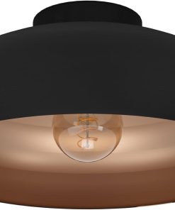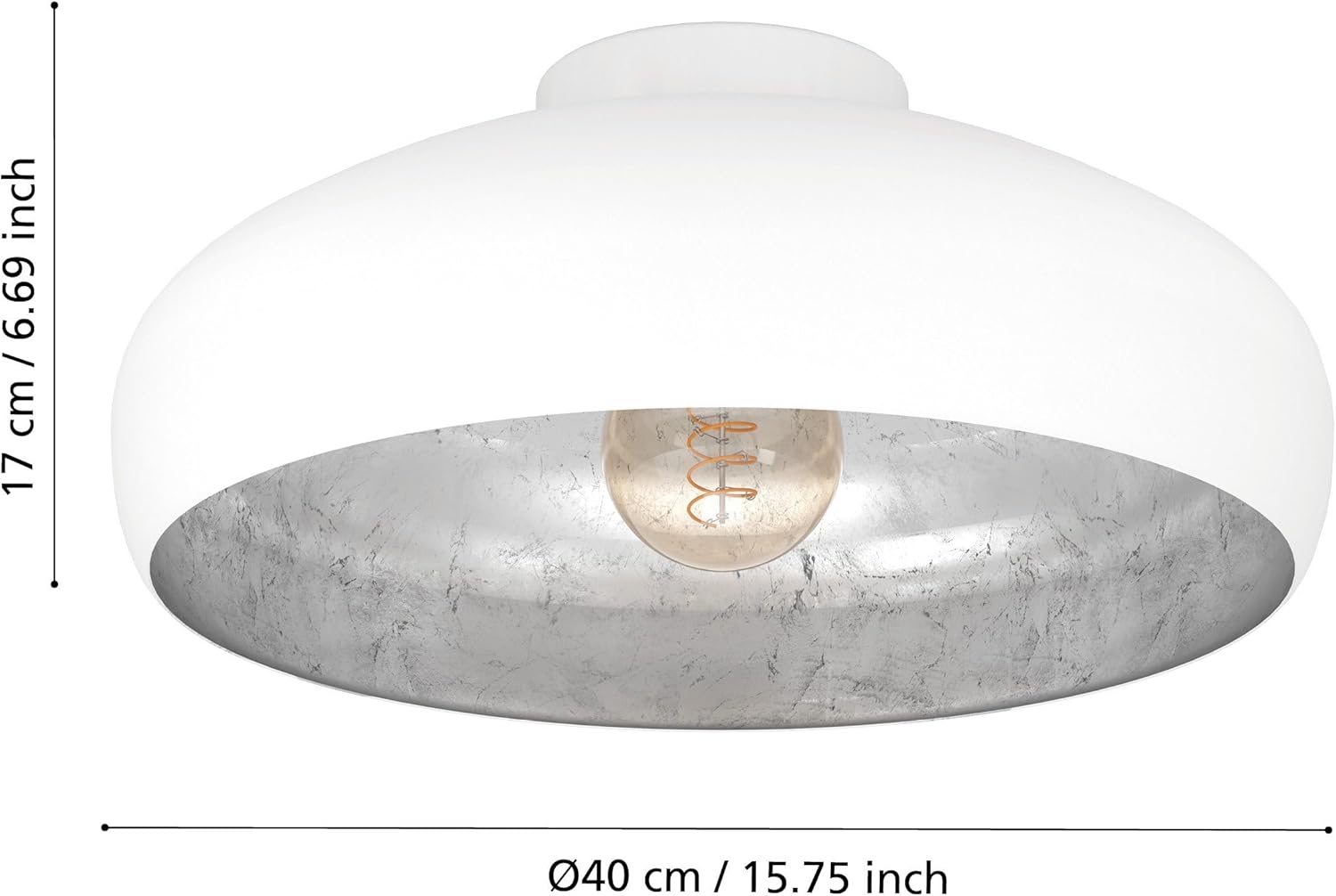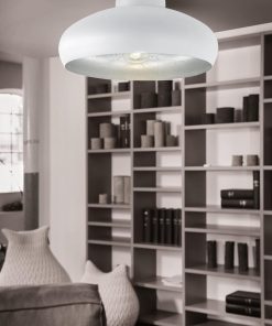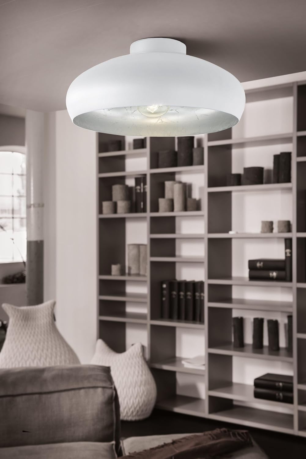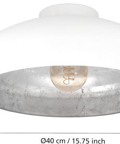 Eglo Luminaire plafonnier Mogano, lustre au style industriel et vintage en acier blanc, argenté, lampe de plafond pour salon, cuisine et couloir, douille E27