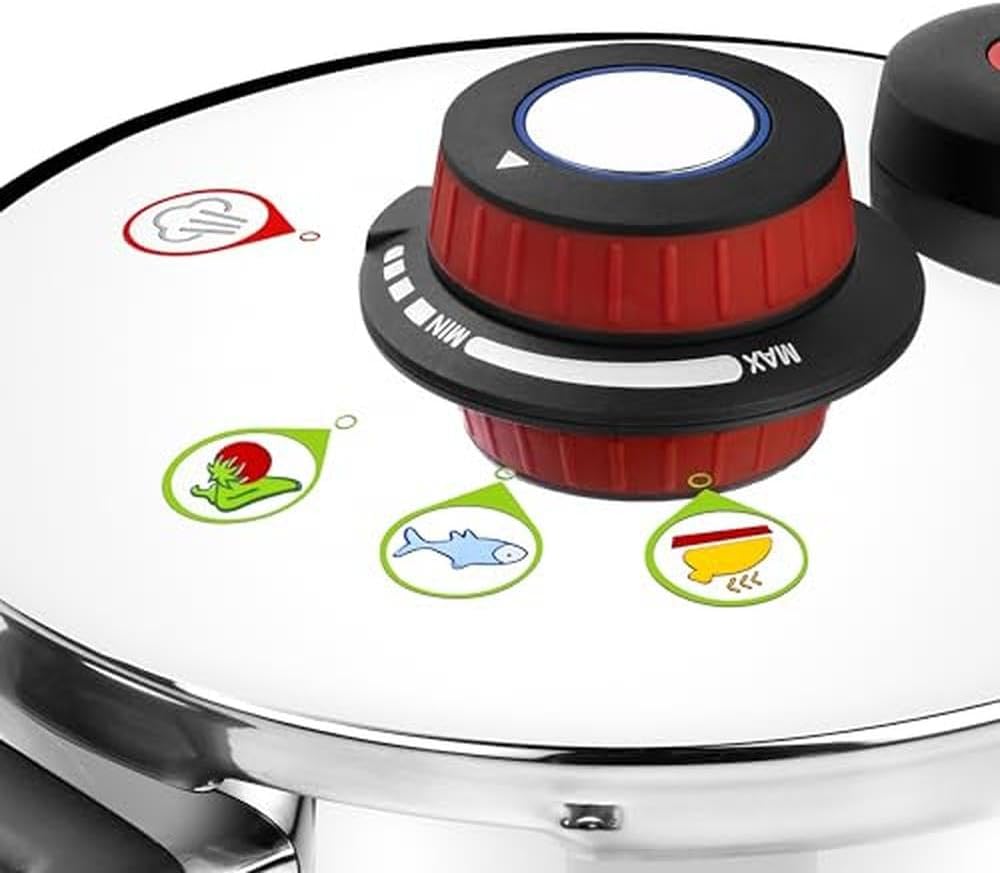 - Sélecteur de pression progressive: l’autocuiseur est doté d’un régulateur qui permet une sélection progressive de la pression (système Select & Cook)
