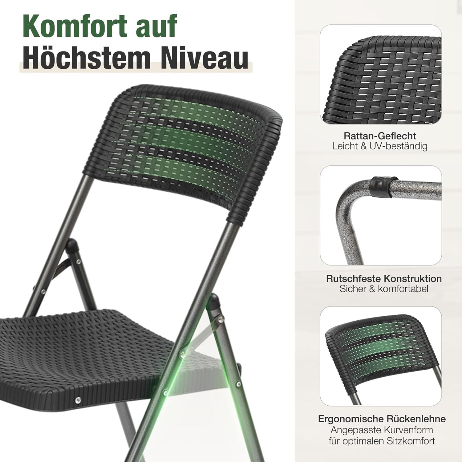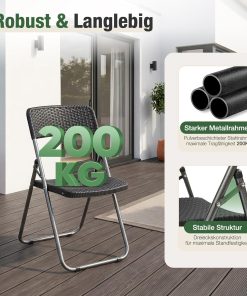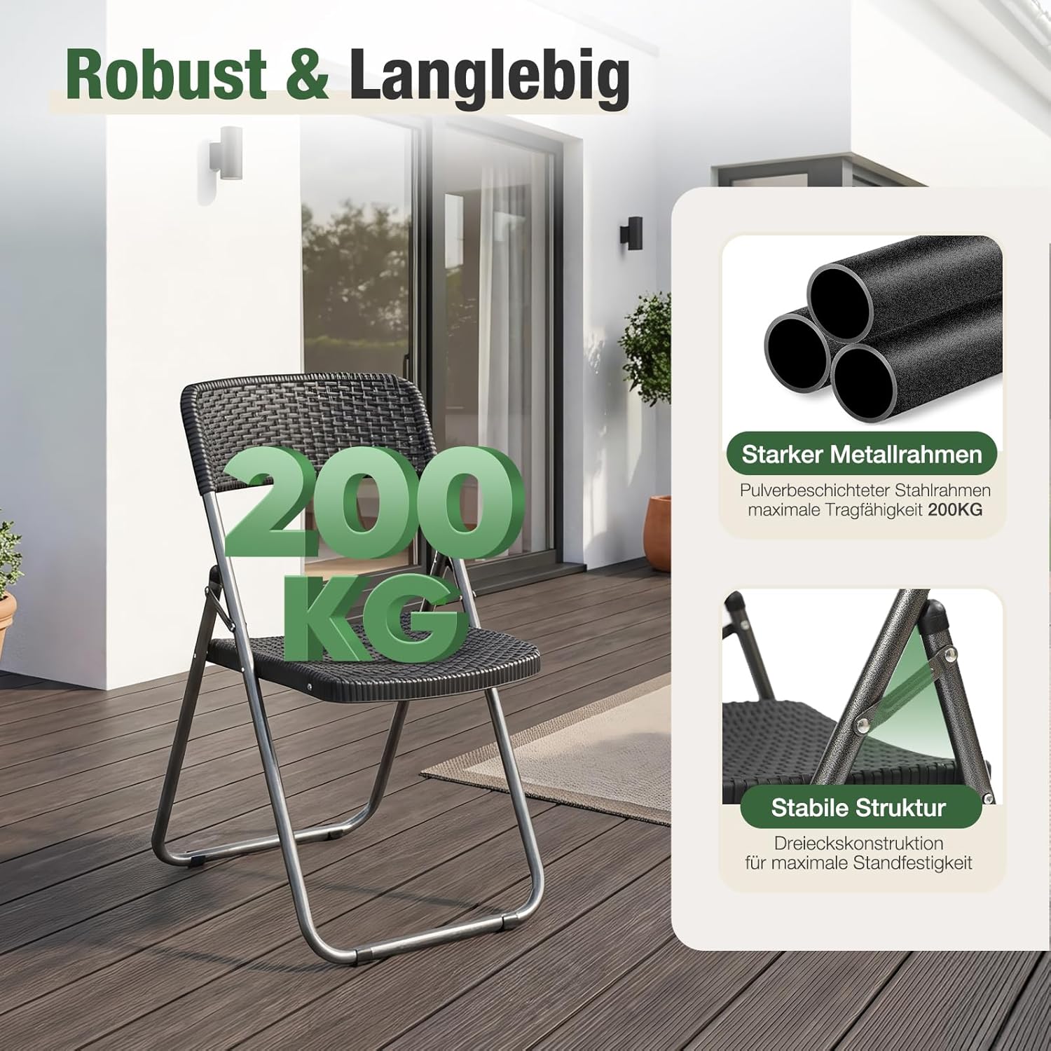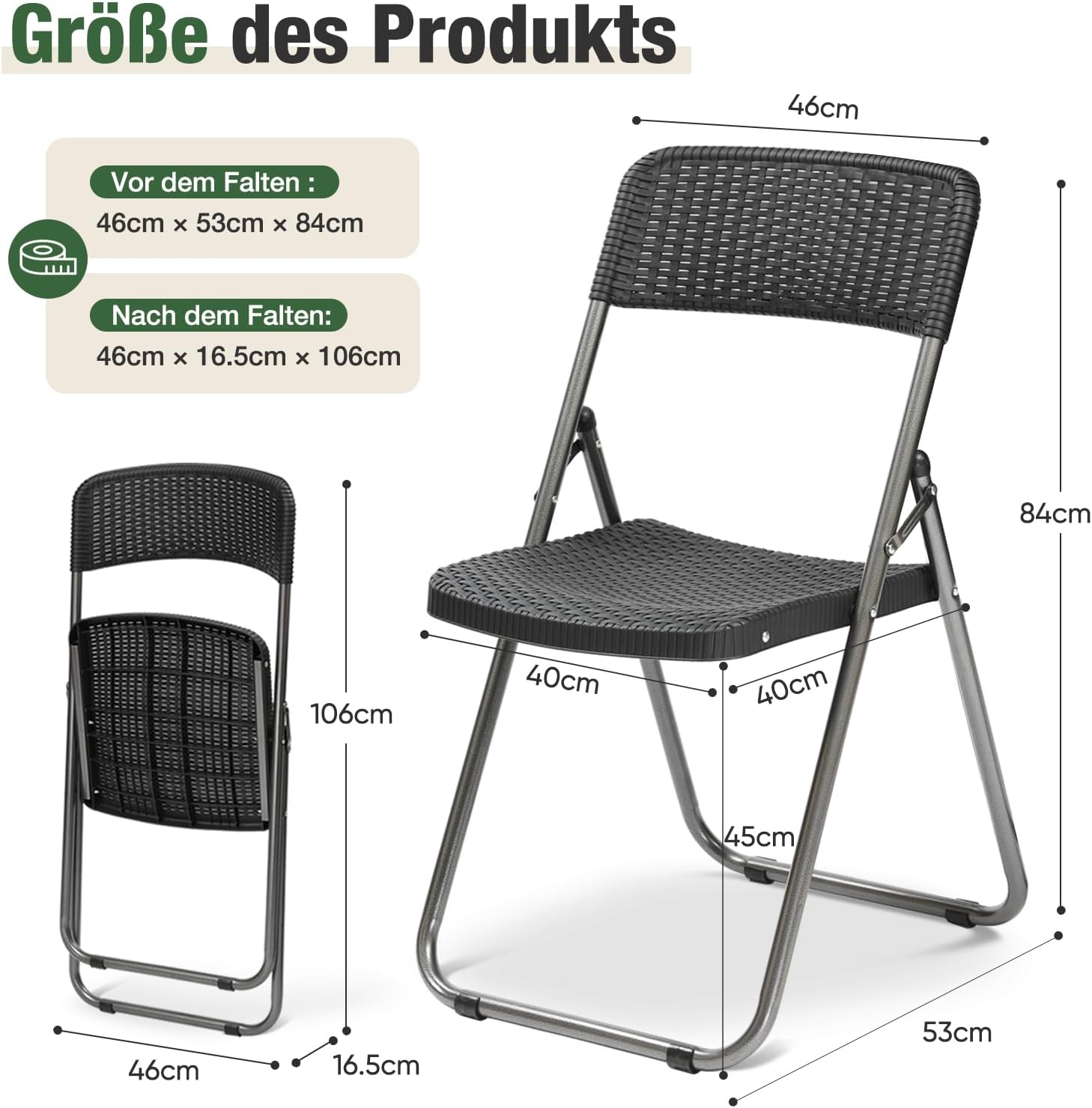 Sekey 4 Chaises Pliantes, Chaise de Balcon en Résine Tressée, 46 x 53 x 84cm, Jardin Balcon Camping, 200 kg de Charge, Noir