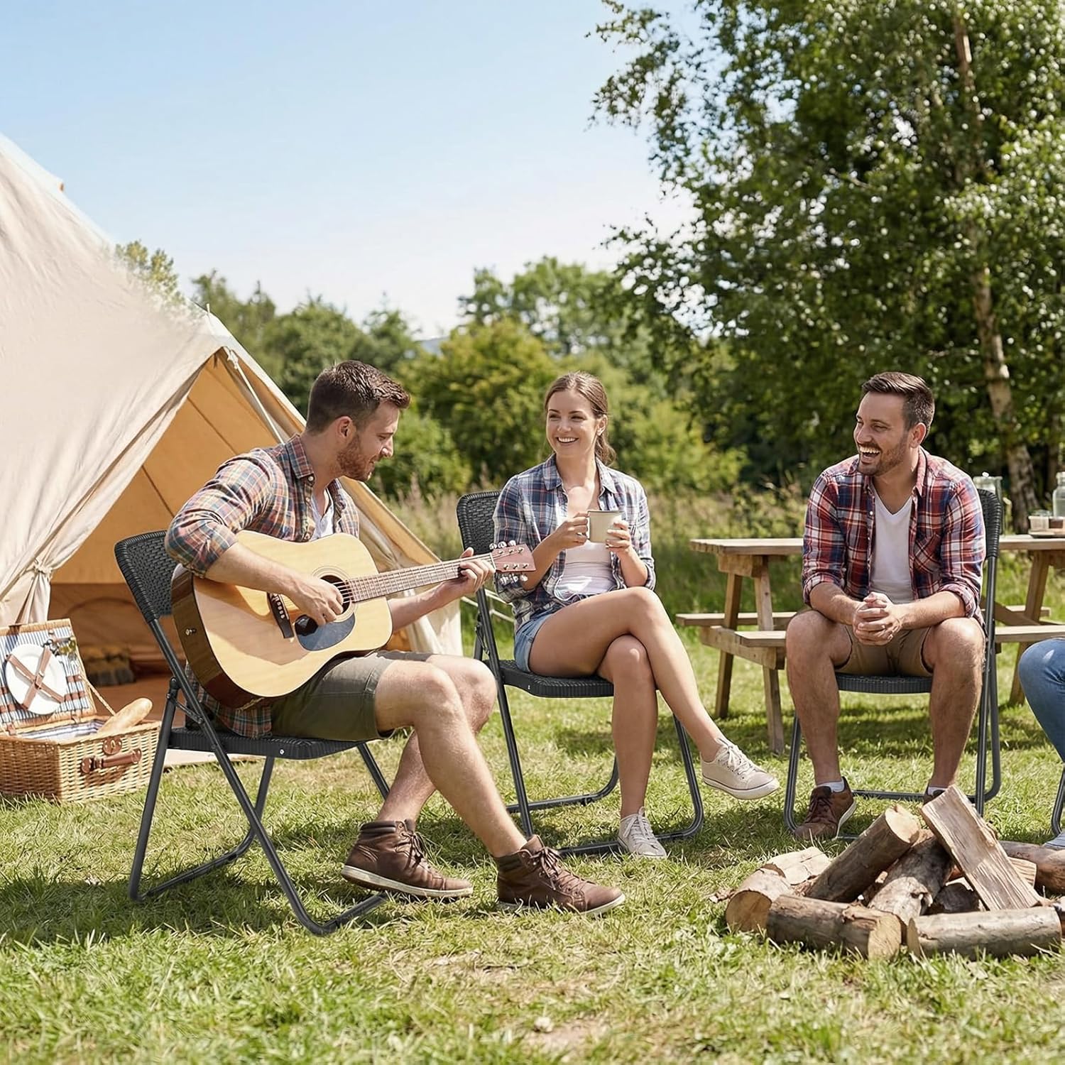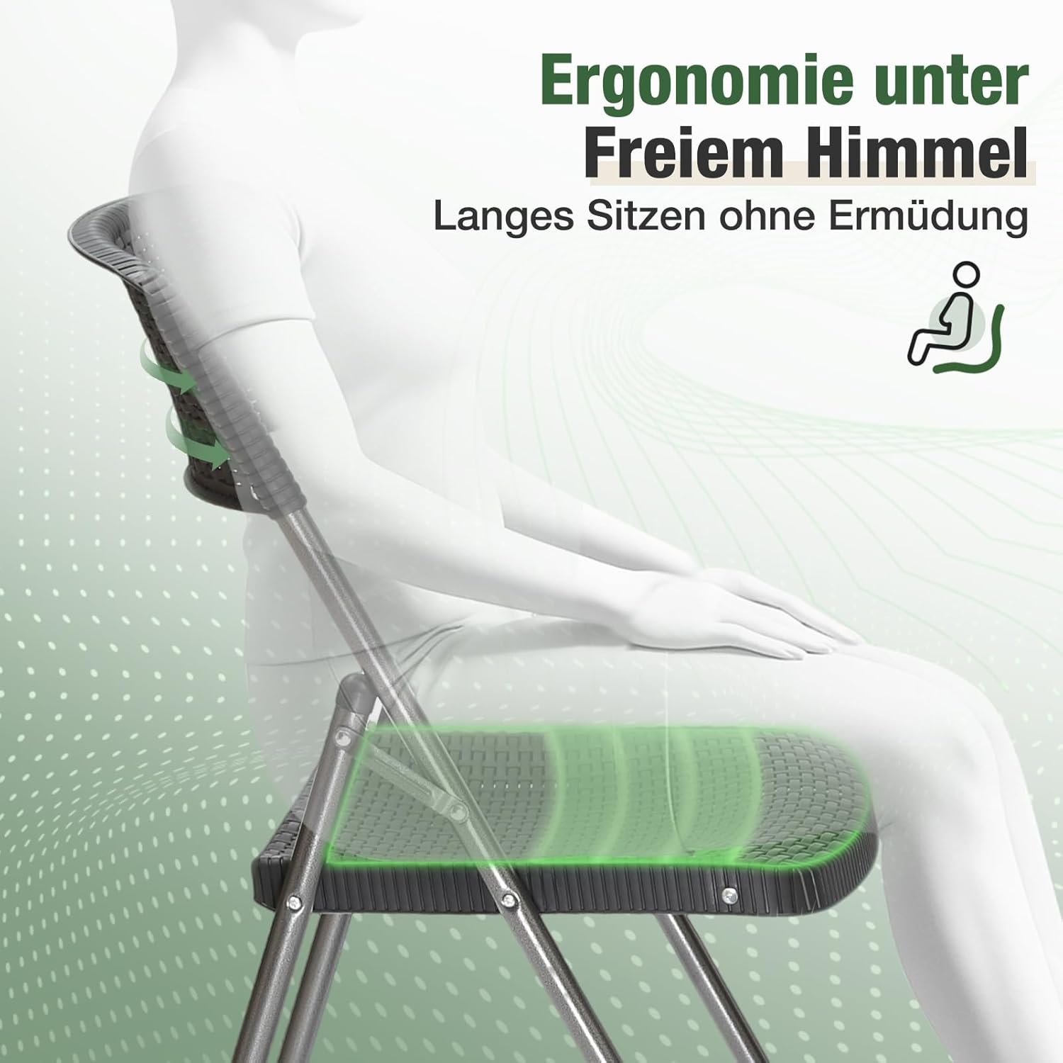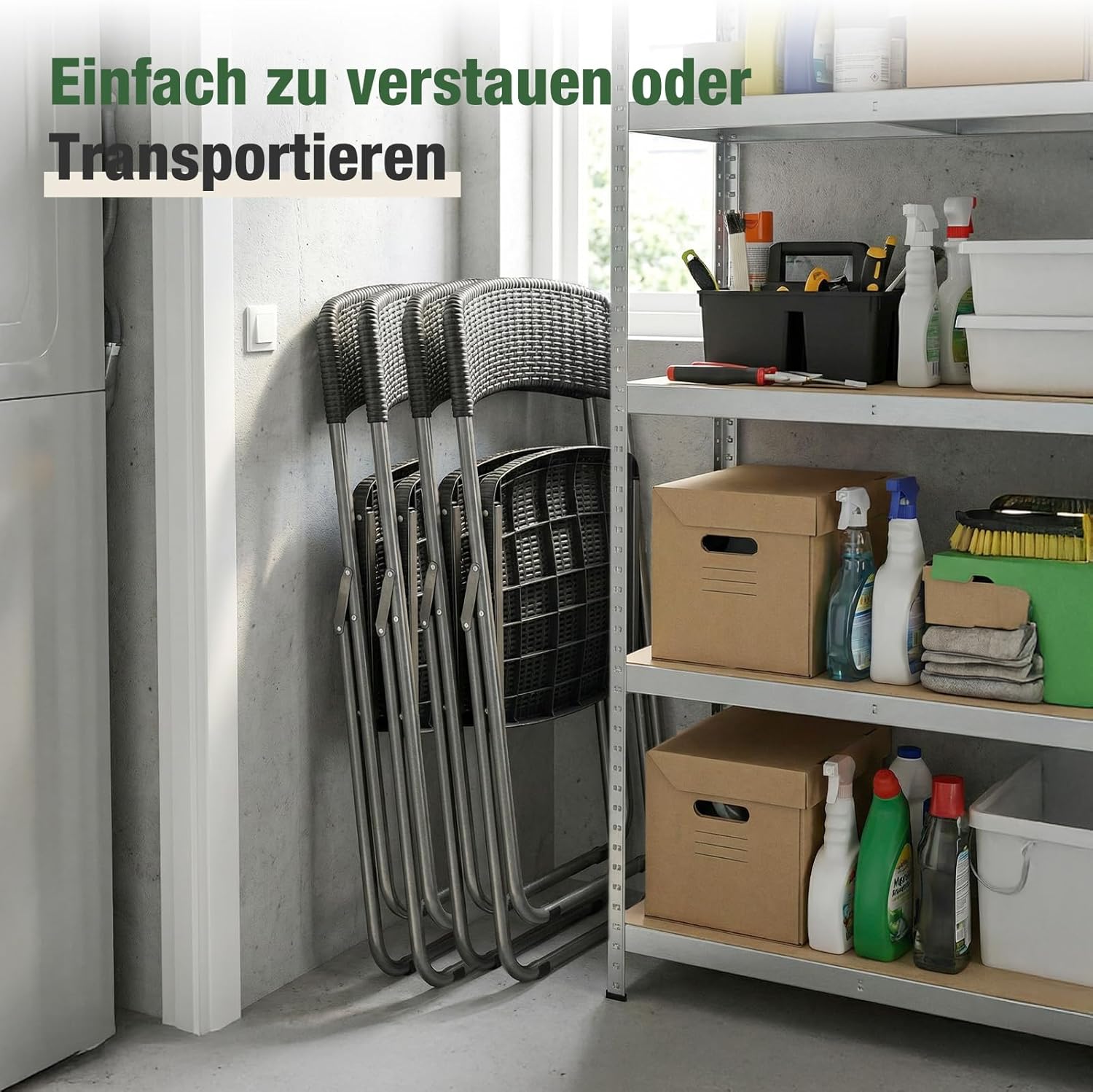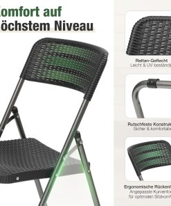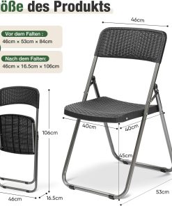 Sekey 4 Chaises Pliantes, Chaise de Balcon en Résine Tressée, 46 x 53 x 84cm, Jardin Balcon Camping, 200 kg de Charge, Noir