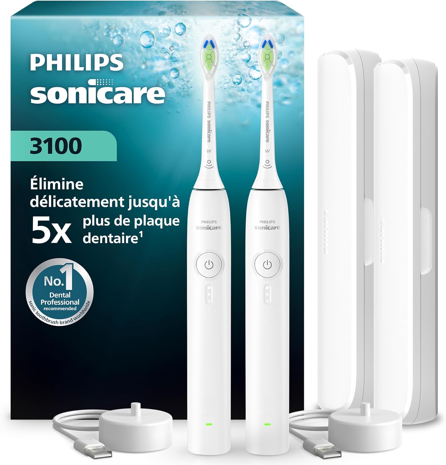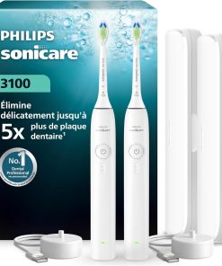 - Le kit comprend : 2 brosses à dents électriques soniques Philips Sonicare 3100, 2 têtes de brosse C1 ProResults, 2 chargeurs