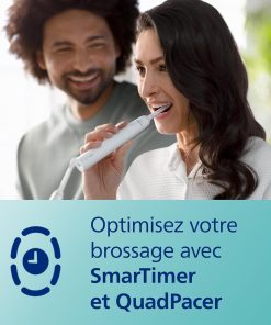 - Optimisez votre brossage : EasyStart augmente graduellement et progressivement la puissance de brossage, SmarTimer vous informe lorsque vous avez atteint 2 minutes de brossage et QuadPacer permet une meilleure observance du brossage