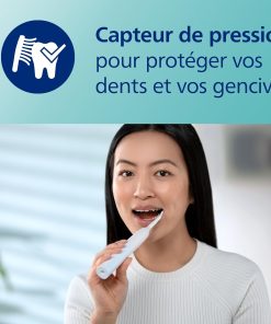 - Sûr et en douceur : si vous appliquez trop de pression, le manche pulsera légèrement, vous rappelant de relâcher la pression pour protéger vos dents et vos gencives
